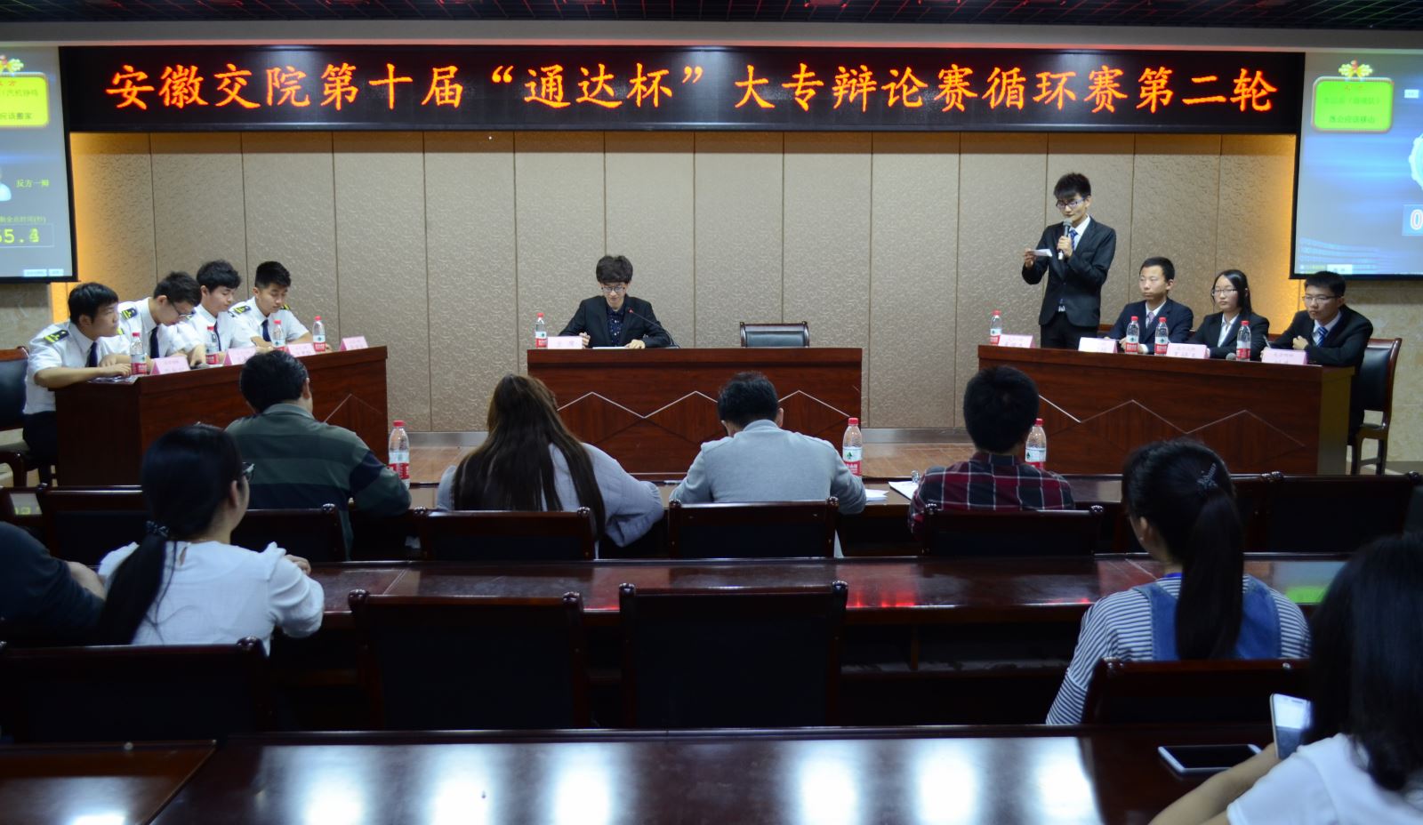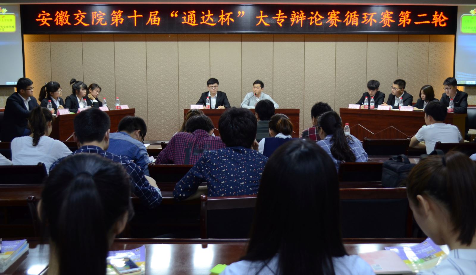 5月4日晚7时,第十届“通达杯”大专辩论赛第二轮第一场与第二场在学生活动中心举行。