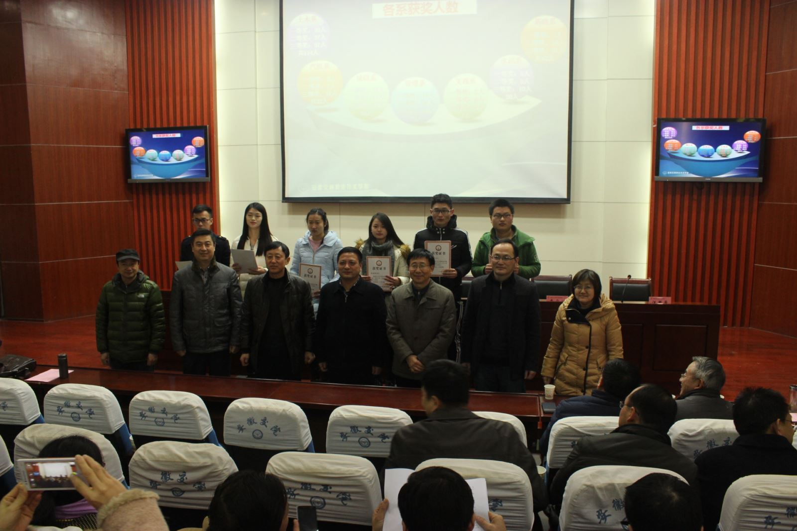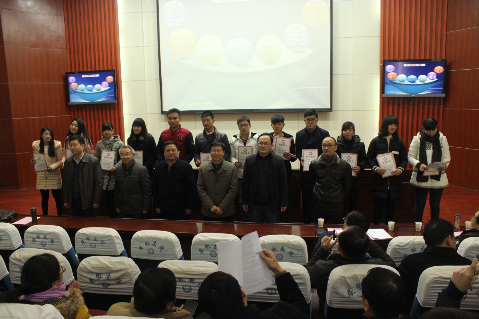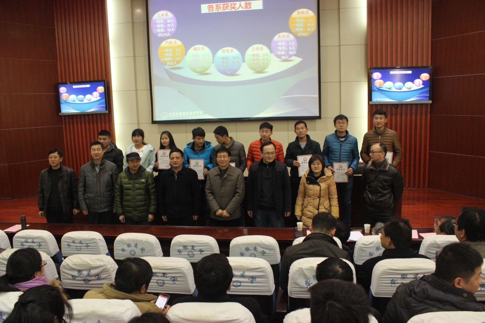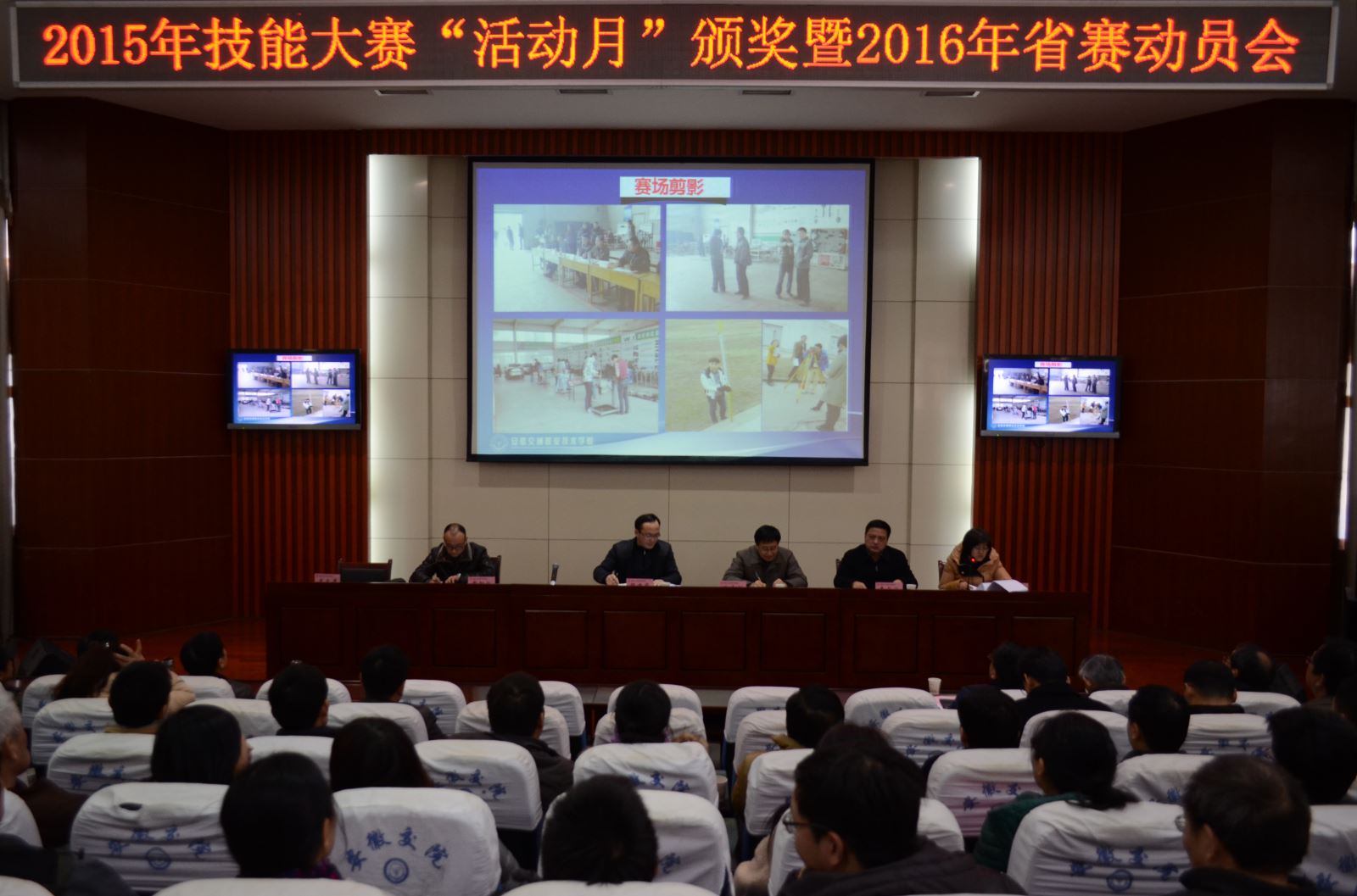 1月13日下午,学院2015年技能大赛“活动月”总结表彰暨2016年省技能大赛动员大会,在学术交流中心召开,副院长王丰胜、人事处、学生处负责人、教务处全体人员及各系领导、大赛指导教师、获奖学生代表出席大会。
