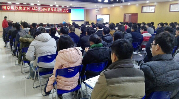 签约仪式之前,学生处就业指导中心老师对就业协议书的填写进行了详细讲解。南京地铁运营有限责任公司人力资源部的两名同志,分别介绍了公司的基本情况以及薪酬等情况,现场解答了同学们关心的各类热点问题。整个签约活动进展顺利,流程规范有序,受到毕业生的欢迎和好评。这批签约的同学分别来自学土木系、汽机系和城信系,其中90%以上为城信系,他们经过严格的面试从240多名应聘的毕业生中脱颖而出,又经过严格的体检,合格后被正式录用,签约后他们将在今年6月底拿到毕业证后正式到公司报到上岗。