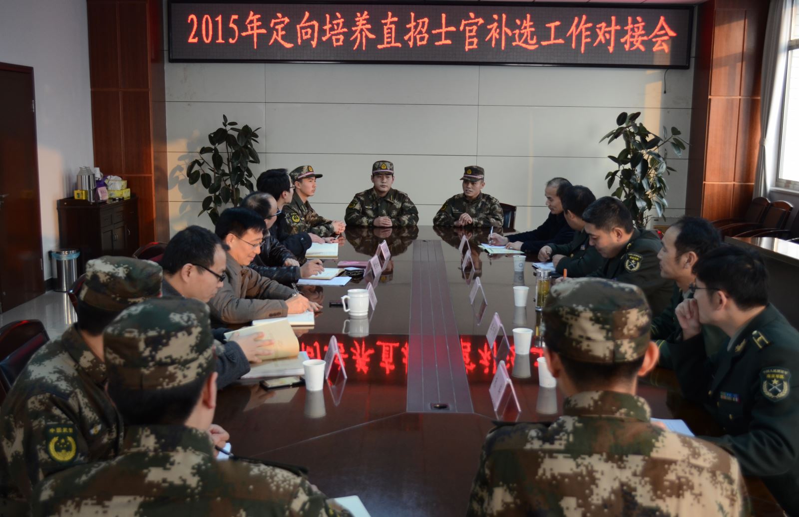 军区、培养部队领导和学院领导互相交换意见,商讨了2015年士官班的增补计划以及体检政审的工作安排,会议取得了圆满成功。(记者团 文孙丰帅 图/陈金荣)