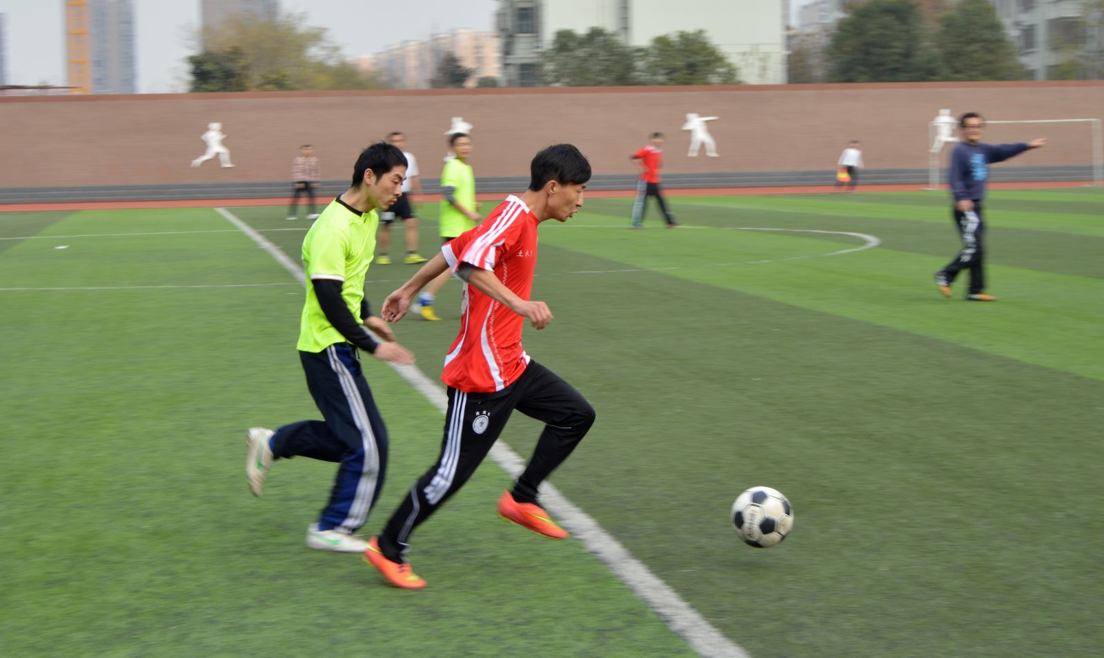 绿茵促进友谊,足球展示魅力青春。12月12日下午,省交通运输厅工作人员和米兰教职工“足球友谊赛”在公路技校足球场激情上演。