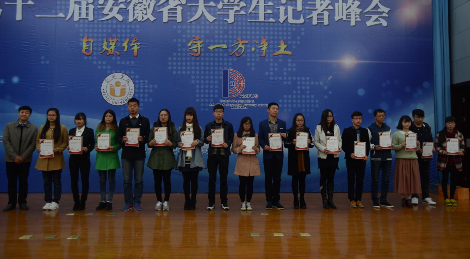 米兰记者团采编部许伟、程敏两位同学共同采写的《百里毅行,毅行者也是蛮拼的》获得好新闻“通讯”类三等奖,许伟同学的《流量都去哪儿了》获得好新闻“言论”类三等奖并荣获“安徽青年报十佳记者”称号,文学部张福超同学《朝夕相处,重拾昔日美好》获得峰会征文三等奖。