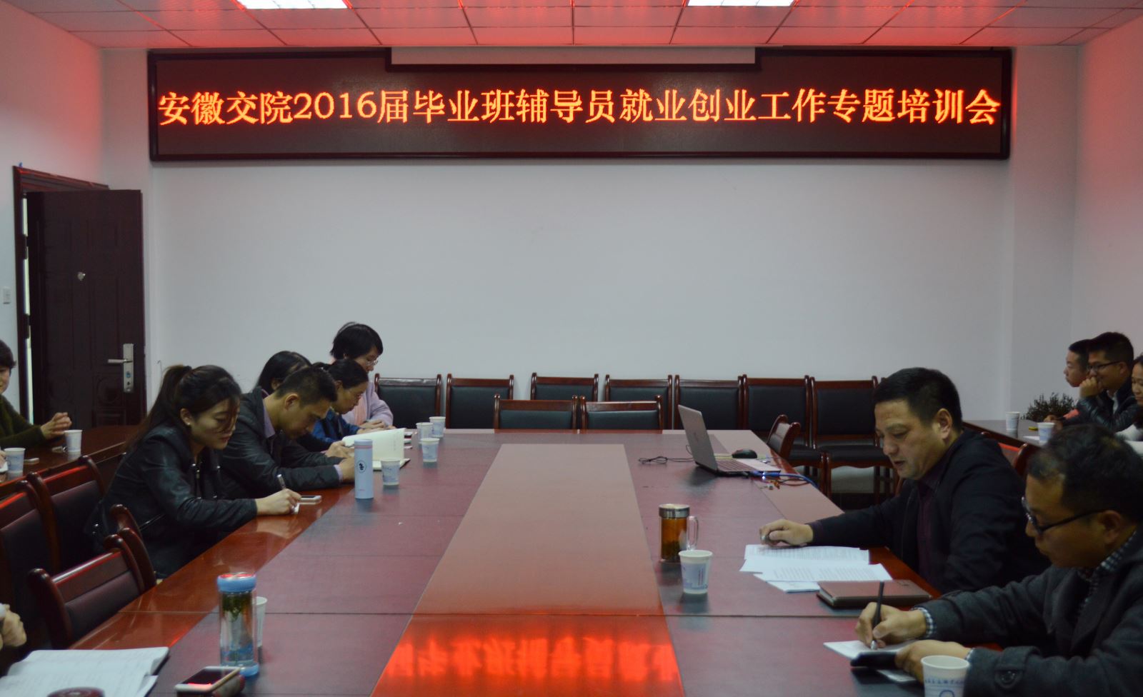 就业办负责人分析了2016年就业工作形势,强调了就业创业工作的重要性,要求毕业班辅导员要认清就业创业形势,增强工作责任感和使命感。加强就业宣传,营造浓郁的就业氛围;引导学生上网搜集信息,对那些自我定位不准,就业意向模糊的毕业生有针对性地开展就业指导,重点帮扶困难毕业生就业。