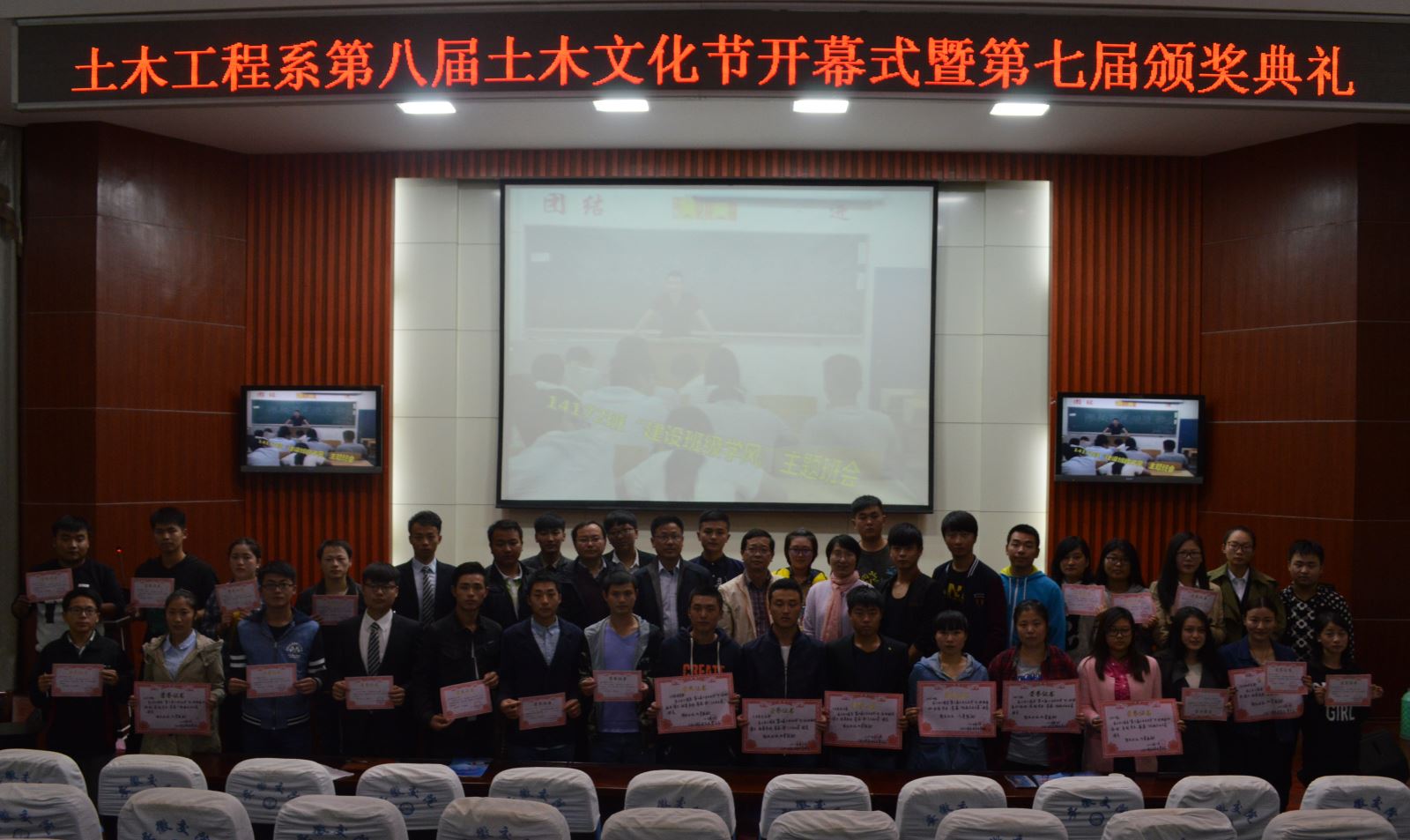 会上,简要介绍了第七届土木文化节情况,宣读了本届土木文化之星获奖者名单。此次土木文化节共由“土木文化大讲堂”,团总支学生会十三个部门和协会承办的27个活动,一、二年级团支部、班委承办的每月一次的主题班会三个部分组成。共有六个部门获得部门文化之星,十个班级获得班级文化之星,二十五位同学获得个人文化之星。