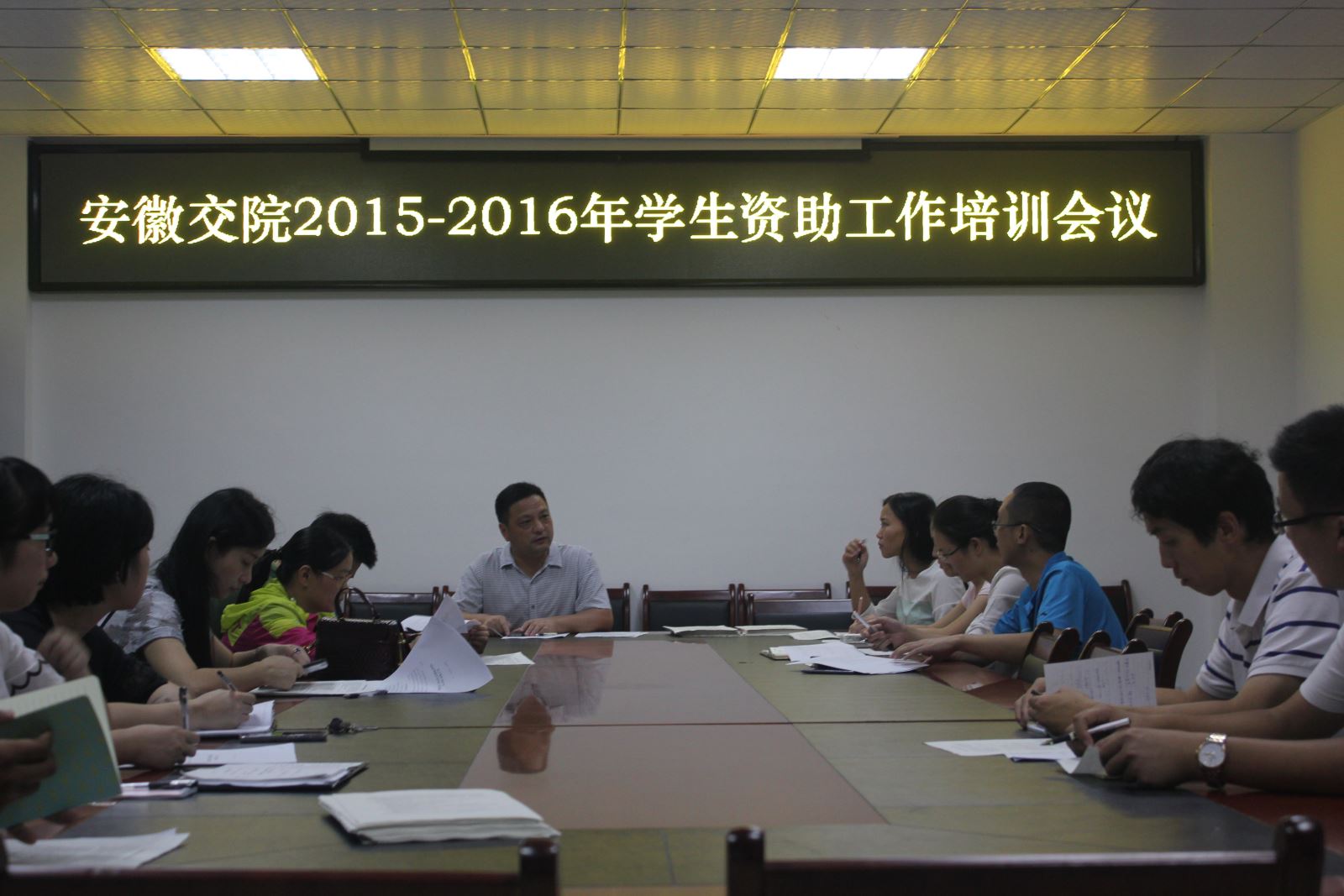 培训内容主要包括学院2015-2016学年家庭经济困难学生认定及系统录入操作和2014—2015学年国家奖助学金评审文件学习两方面。院资助工作负责人结合培训资料给大家详细解读了关于家庭经济困难学生认定、三奖评审方面的政策,并结合历年认定评审工作中存在的问题与各系老师展开交流与探讨,积极提出改良建议和要求。