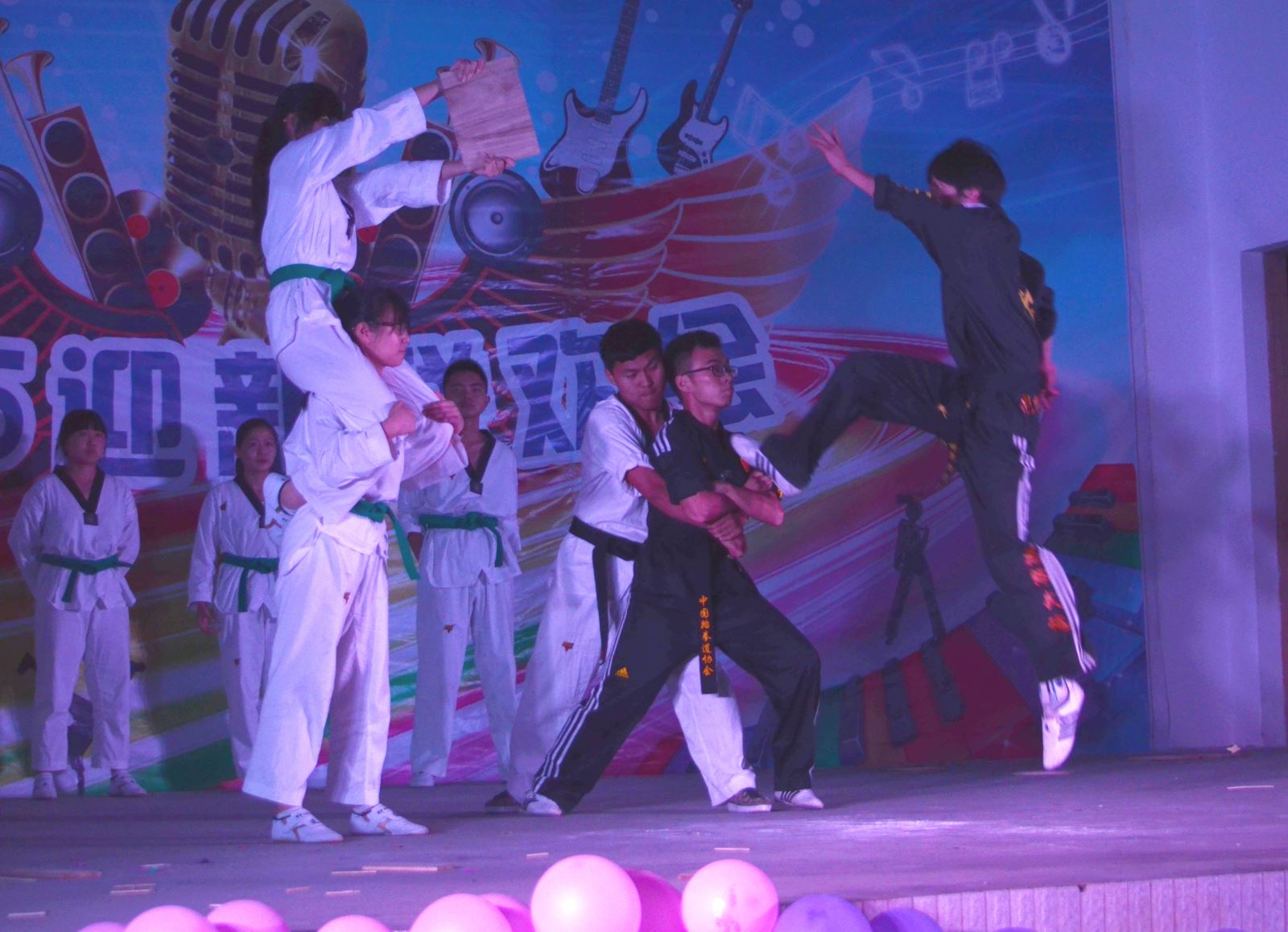 一开场迎新视频生动展现了新生报到的场面。随后,卓越吉他社的精彩吉他表演正式拉开了晚会帷幕。歌舞、相声、小品、街舞、跆拳道、双截棍等精彩的节目表达了学院对新同学的热烈欢迎。舞蹈《Happy Young》动作优美,引人入胜;大一新同学屈文杰表演的独舞带来了一波小小的热潮,动感的音乐,性感的舞姿,引得台下的同学叫好连连;笑语堂自编、自导、自演的小品《团结的故事》,生动的展现了米兰学子的幽默与可爱。诙谐的语言,滑稽的表演,令人不禁捧腹大笑。