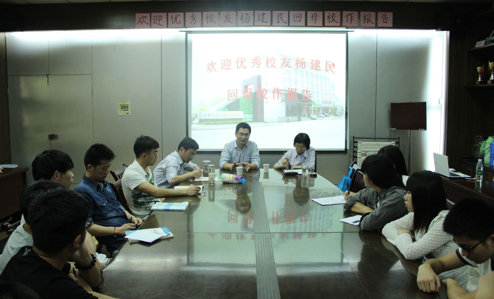 5月7日晚七点,土木工程系03级校友杨建民应邀回到阔别已久的母校,在北教三楼会议室为学弟学妹作专题报告。