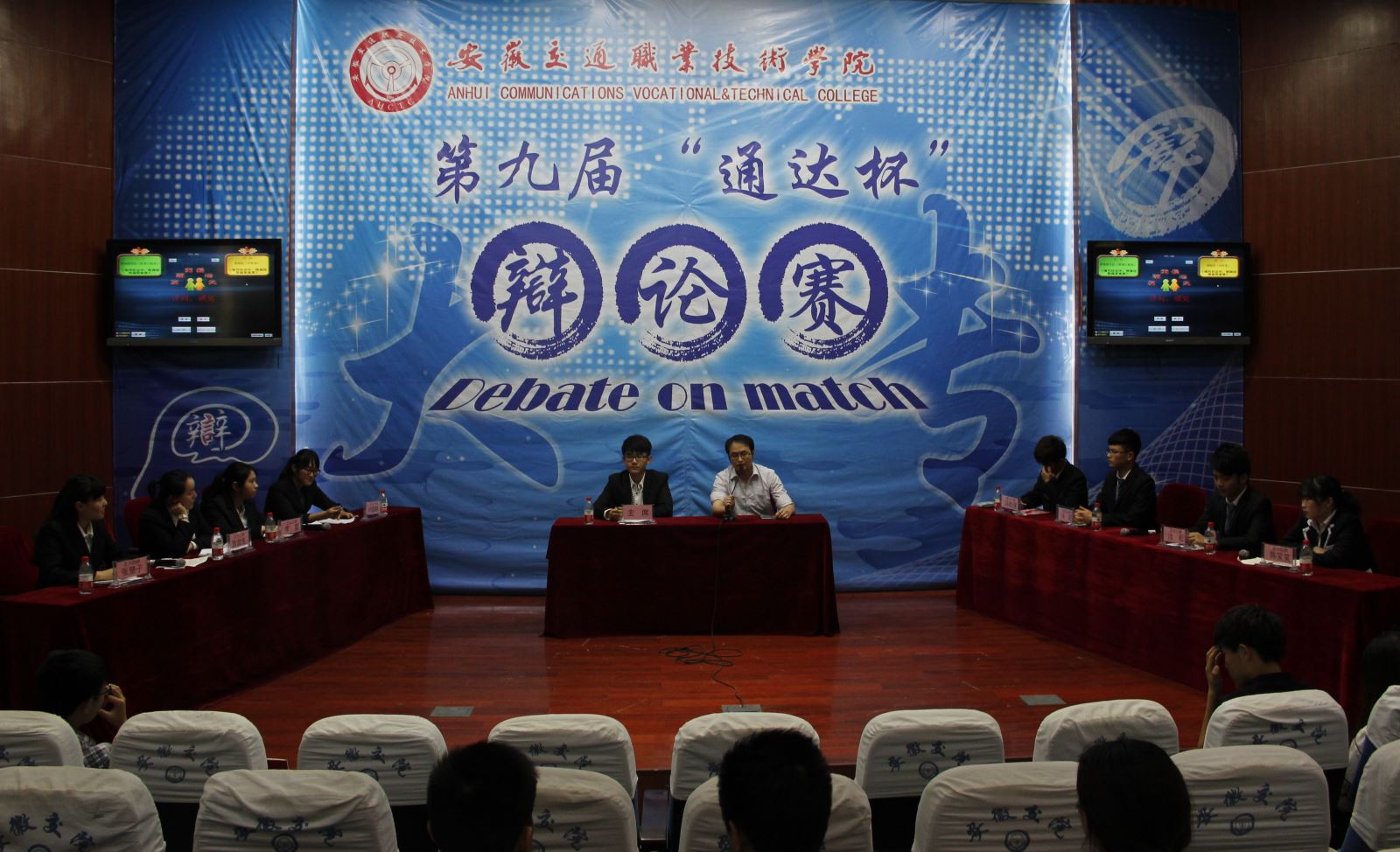 5月11日晚7点,第九届“通达杯”大专辩论赛第五场第一轮在多功能报告厅举行。正方土木工程系代表“无双队”与反方水运工程系代表“蓝色梦想队”围绕“寒门出贵子,还是豪门出贵子”展开激烈的辩论。正方从“环境育人,智慧教子,奋斗动力”等方面阐述“寒门出贵子”的观点。反方则从“起跑线,家庭教育,发展资源”等方面论述本方“豪门出贵子”的观点。通过激烈的比拼,土木系获得胜利,正方14轮机班陈宸与反方13111班程琪荣获“最佳辩手”的称号。