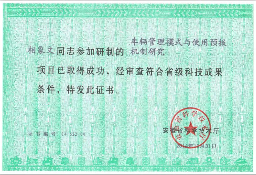 近日,汽机系承担的安徽省高速公路控股集团有限公司科研项目《车辆管理模式与使用预报机制研究》被安徽省科学技术厅鉴定为安徽省“省级科技成果”。