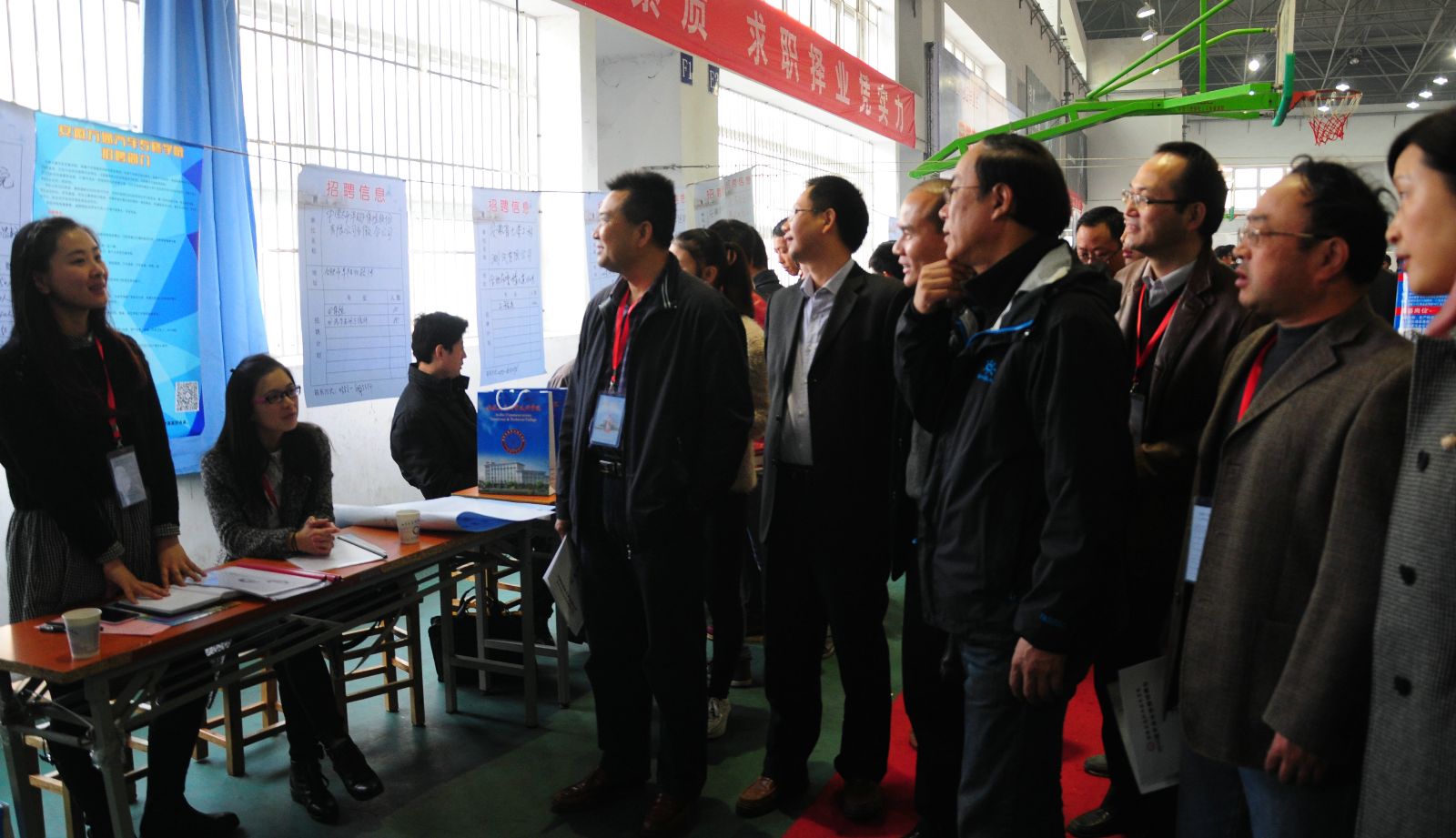 为了让企业和毕业生深入交流,招聘会还在教学楼为一些企业召开说明会提供方便。各系领导、毕业班辅导员的身影也在人群中不时地闪现,他们有时与用人单位交流了解就业信息,有时与毕业生沟通,为他们答疑解惑。