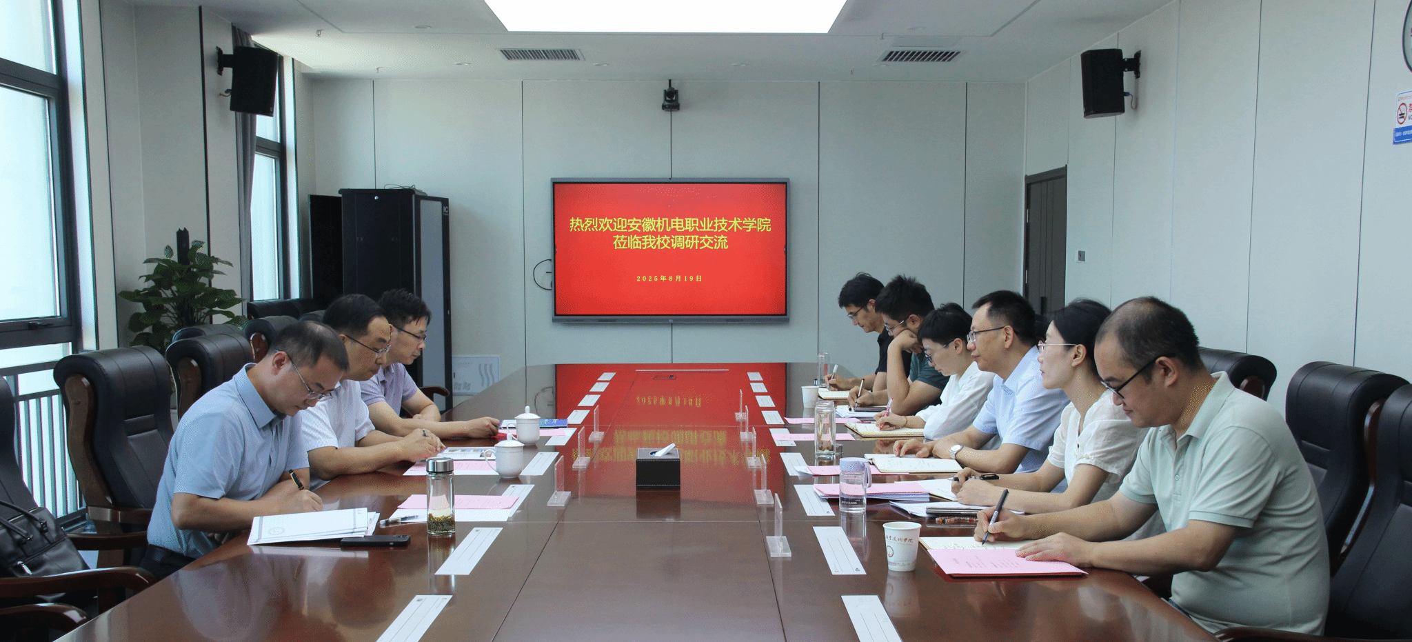 8月19日上午,安徽机电职业技术学院党委书记徐春林一行来米兰开展调研交流,校党委书记杨菲铃及相关部门负责人接待陪同。