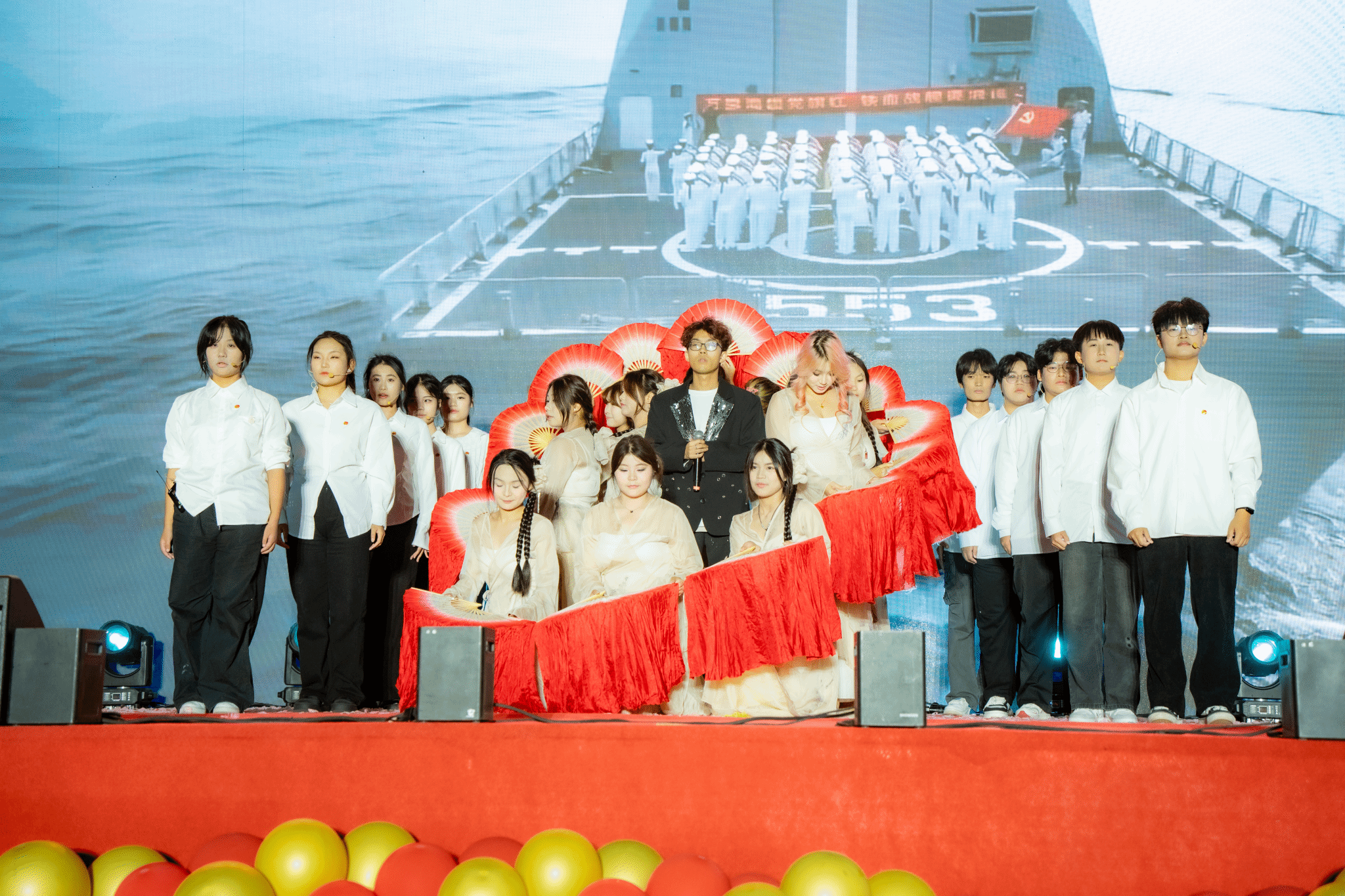 舞台上,舞步交织出斑斓色彩,合唱与民族舞共演的《铭记》饱含深情,“同行” 的青春热意在并肩起舞间愈发浓烈,青春脉搏与时代鼓点同频共振。《青春奔跑》方阵踏响奋进节奏,联欢会最终以《我爱你中国》大合唱收尾,用嘹亮歌声书写向光而行的青春誓言,彰显家国情怀。