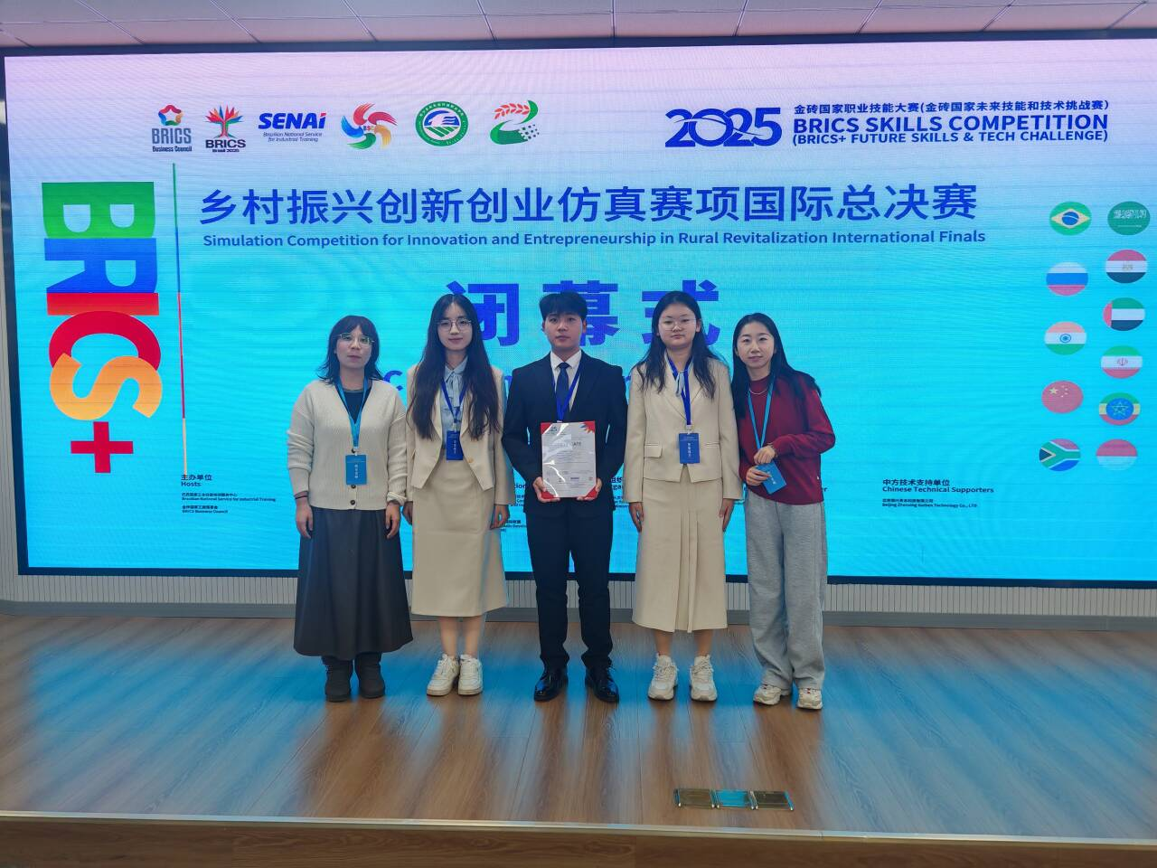 11月17日,2025金砖国家职业技能大赛乡村振兴创新创业模拟仿真赛项国际总决赛在鄂尔多斯生态环境职业学院圆满落幕。米兰经济管理学院学生徐澍、王紫慧、周孜盈凭借扎实的专业功底与默契的团队协作,历经省级及区域选拔赛的层层筛选,在决赛中脱颖而出,成功斩获国际总决赛二等奖,充分展现了米兰学子在乡村振兴领域的卓越创新能力与扎实实践水平,为学校赢得了荣誉。