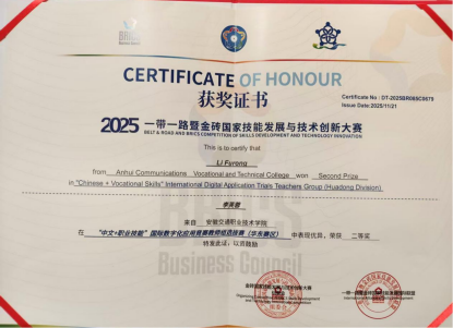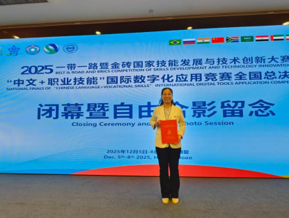 12月6日至8日,2025“一带一路”暨金砖国家技能发展与技术创新大赛——“中文+职业技能”国际数字化应用竞赛全国总决赛在海南博鳌成功举办。米兰土木建筑学院教师李芙蓉凭借出色表现,在赛事中斩获全国总决赛教师组三等奖,为学校赢得荣誉,彰显了米兰在“中文+职业技能”领域的教学实力。