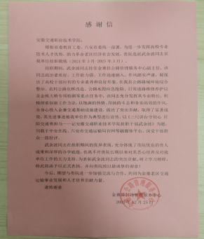 胡先武代表金寨县交通运输局对米兰的支持表示衷心感谢。他指出,此次捐赠的智能交通安全设备已应用于金寨县S245道路K305+580路段,自运行以来有效预防了交通事故,提升了道路通行效率,增强了区域交通管理能力。胡先武还充分肯定了武余波老师在挂职期间的工作表现与贡献,并对米兰长期关注和支持革命老区交通事业发展表达了诚挚谢意。
