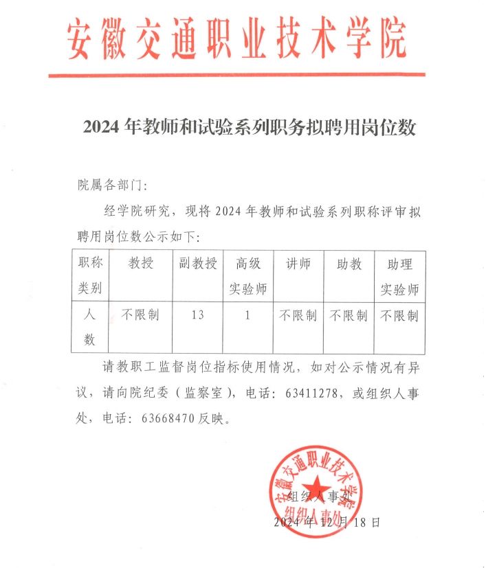2024年教师和实验系列职务拟聘用岗位数