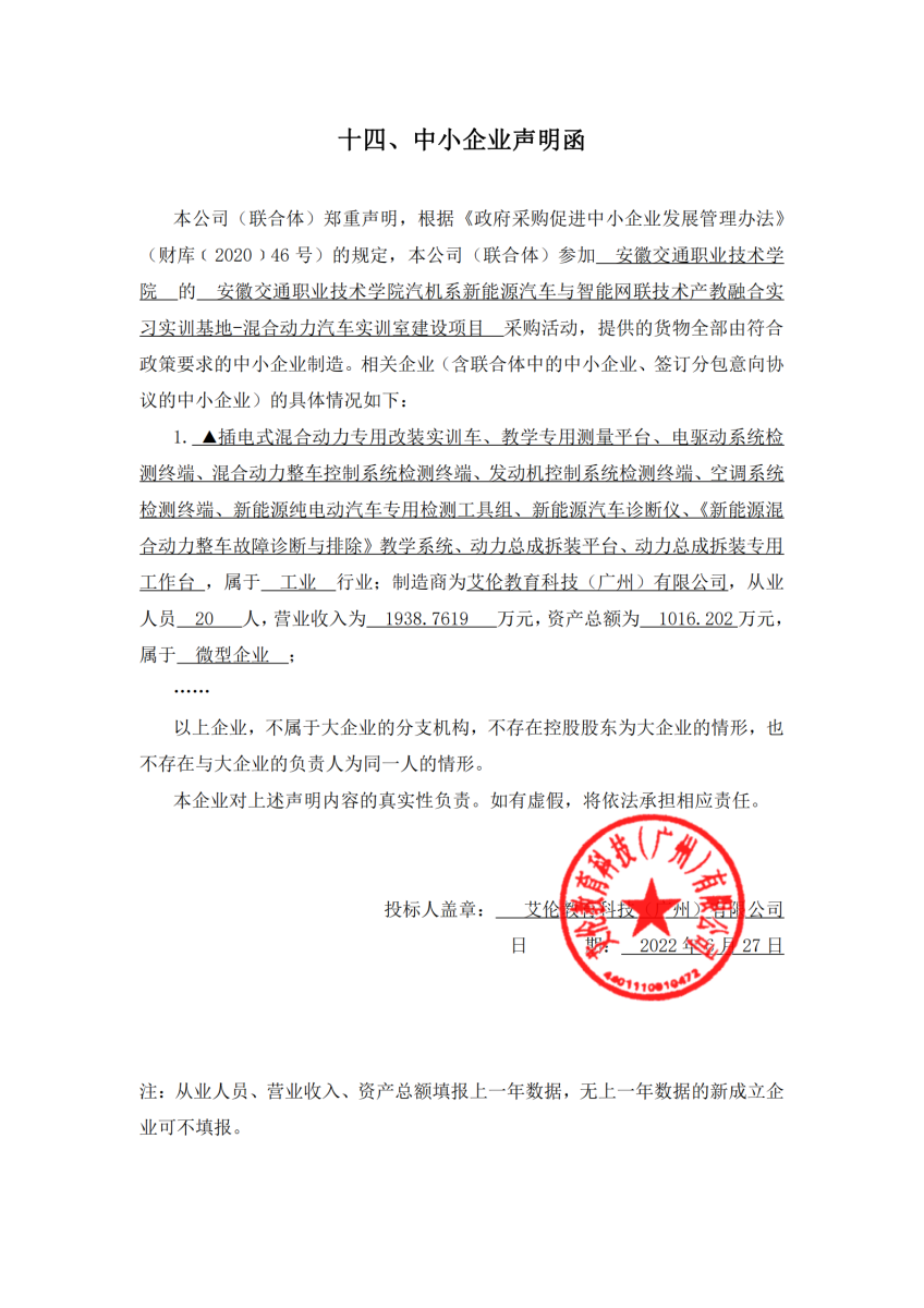 中小企业声明函