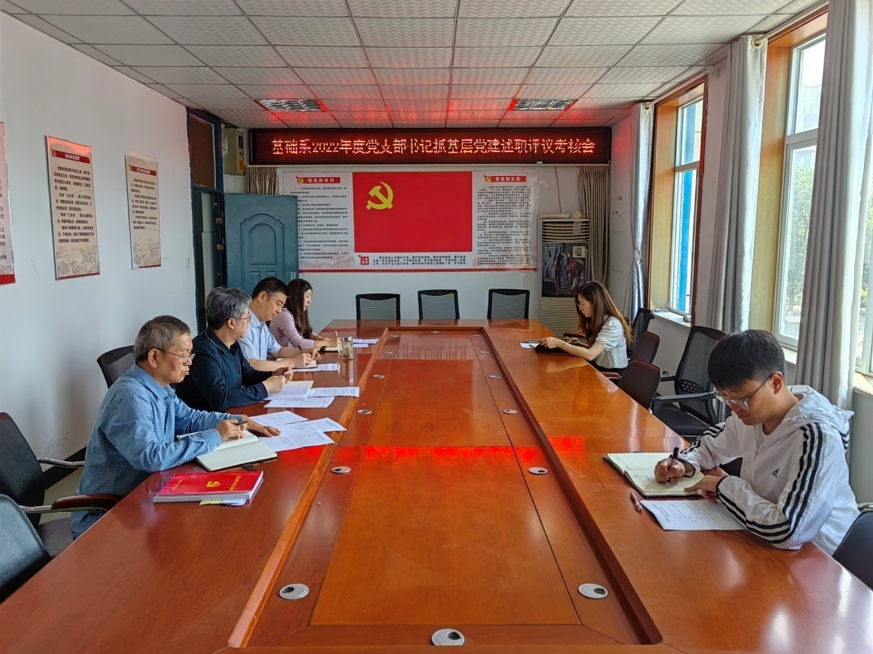 为深入学习宣传贯彻党的二十大精神,进一步提高基层党建工作质量,4月19日下午,基础系召开2022年度支部书记抓基层党建述职评议考核会。系党总支书记邵登泰主持会议,教师党支部、学生党支部书记和委员参加会议。