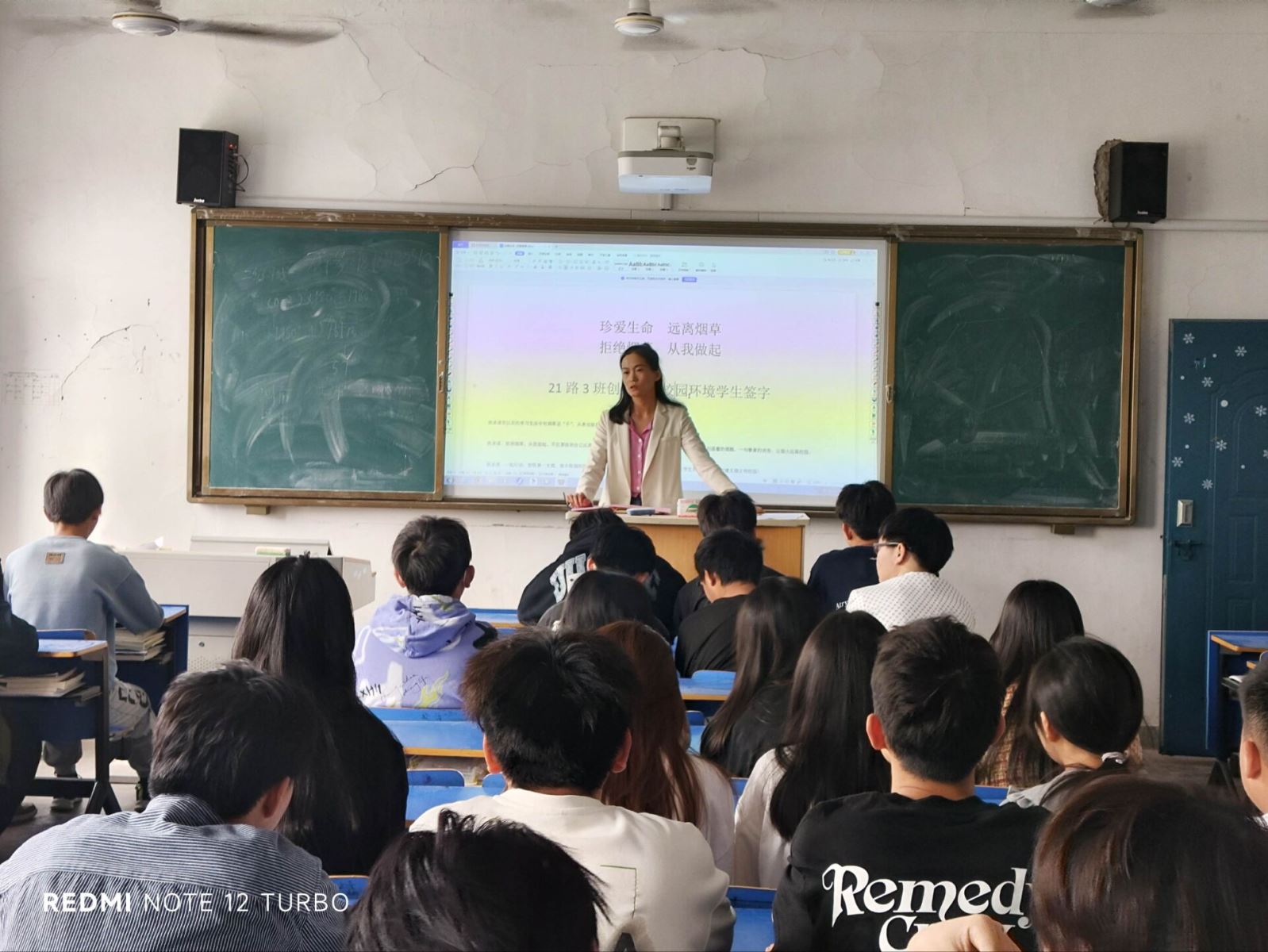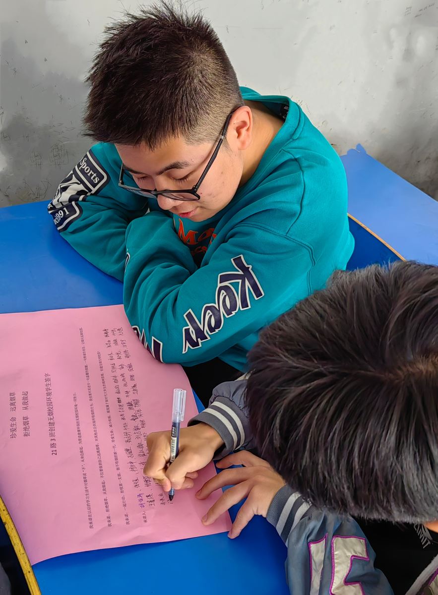 活动期间,各班级召开了“青春无烟更亮丽”主题班会,对学生开展吸烟有害健康的教育,引导学生自觉远离烟草。有的班级开展了主题交流,展开讨论,21路2班徐喜庆同学说:“吸烟存在潜在安全隐患,众多火灾的罪魁祸首都是出自一个不起眼的烟头。我们应共同投入到戒烟的活动中,共同维护好宿舍及校园的环境。”有的班级自发组织签写禁烟承诺书,共同创建无烟校园环境。