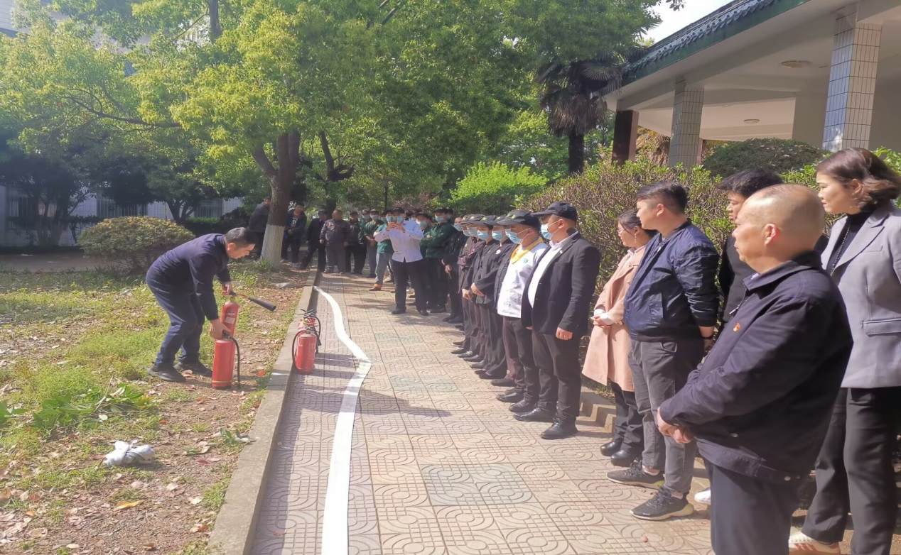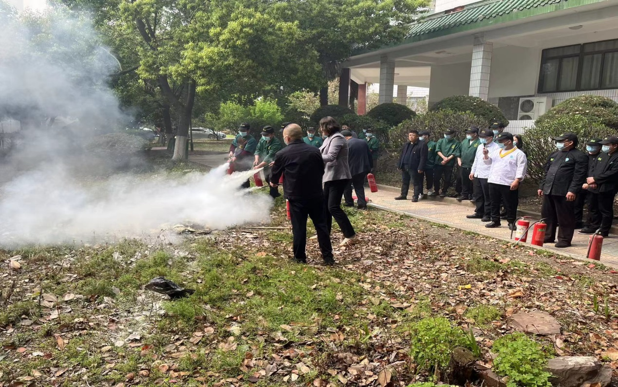 为加强教职员工的消防安全意识,筑牢校园安全屏障,4月7日下午,保卫处党支部联合总务处党支部组织学院物业、食堂、安保、宿管人员和部分老师,开展了消防器材使用演示活动,院党委委员、副院长韦兵到现场指导演示。