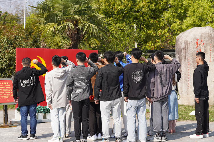 参观中,师生们表达了对革命先烈崇高的敬意。通过观看渡江战役时期相关背景介绍、历史物件、先辈字画等,瞻仰革命先烈风采,领悟党的二十大报告中习近平总书记强调的“务必不忘初心、牢记使命”的深刻含义。最后,全体党员在石碑前重温了入党誓词。