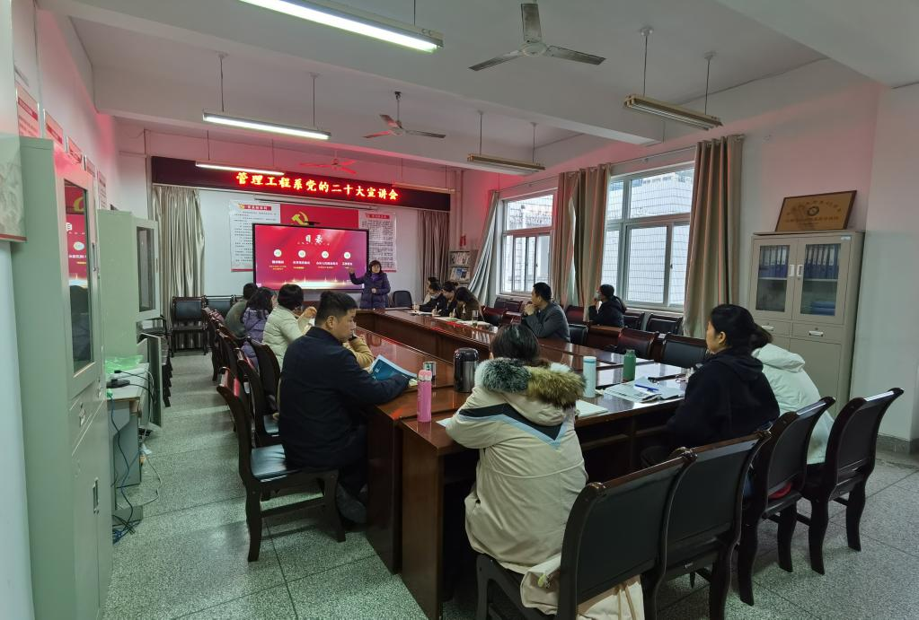 为深入学习宣传贯彻党的二十大精神,3月23日下午,管理工程系党总支书记汪思曼以《新征程,再出发》为题,为管理系全体党员做了一场党的二十大精神专题宣讲报告。