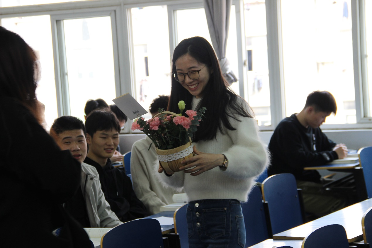 活动中,学生会同学们在教工休息室的大屏幕中展示节日宣传祝福,并亲手写下贺卡插入花篮中,向为学院建设和发展做出贡献的土木系女教师们致以节日的慰问和诚挚的祝福,营造出了浓厚的节日氛围。