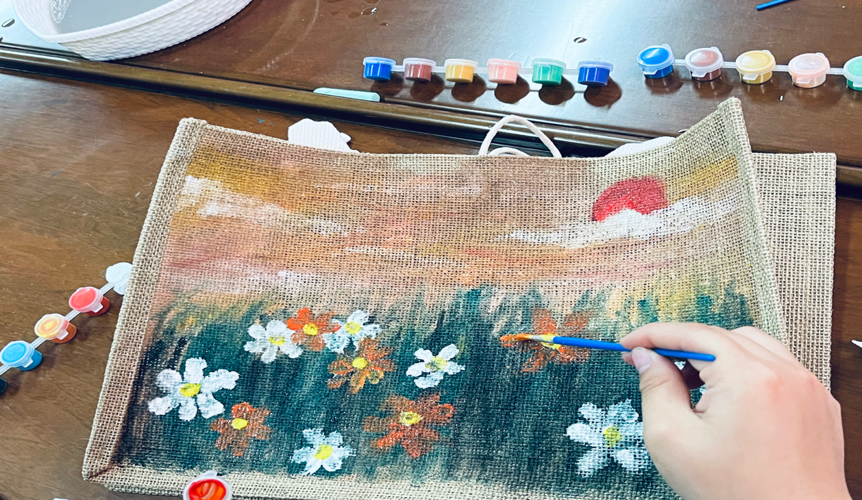 活动现场,活动组织部门的负责同学为大家发放了手绘手袋的材料包,并耐心详细地讲解了绘画要领和注意事项。同学们一边绘画,一边畅聊理想和生活,现场欢声笑语不断,气氛轻松而愉快。通过自由创作,充分发挥自己的想象力和创作力,每位同学都制作出了独一无二的工艺品。
