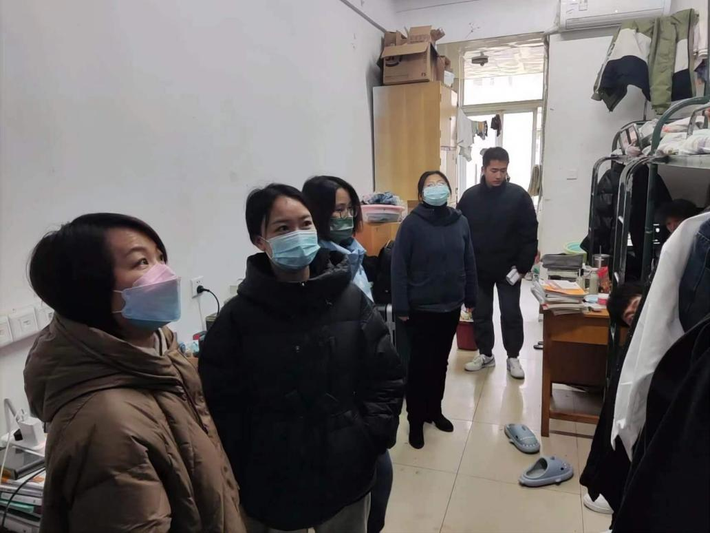 对宿舍进行安全检查。各班辅导员和学生管理老师深入学生宿舍进行安全检查,要求学生严禁使用大功率电器,不私拉电线;严禁使用明火,如酒精炉、火锅等;注意宿舍卫生,注意个人保暖,防止感冒发烧;疫情期间做好防疫,非必要不出校,坚持每日参加核酸检测。(汽机系 解鹏 刘青)