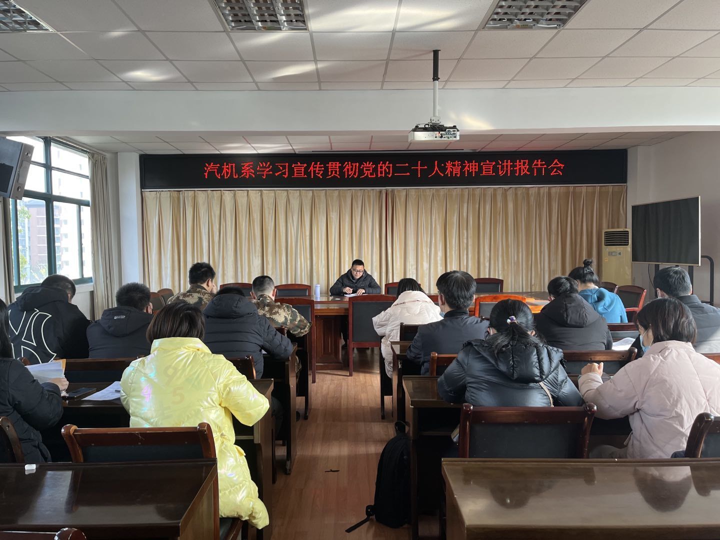 12月12日下午,汽机系党总支召开学习宣传贯彻党的二十大精神宣讲报告会,系党总支书记沈劲松作宣讲报告。汽机系全体党员和部分学生代表参加了报告会。