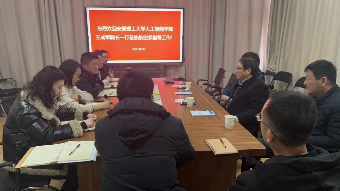 2月10日下午,安徽理工大学人工智能学院院长王成军一行莅临航空系调研指导,航空系负责人孟柯生博士及部分教师参与调研。