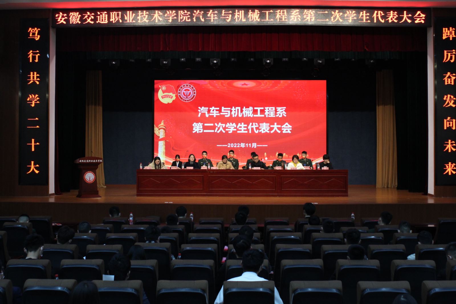 银杏满地黄,红枫似火照。为深入学习宣传贯彻党的二十大精神,进一步加强汽机系学生会组织建设,团结凝聚广大青年学子,11月18日下午,汽机系第二次学生代表大会在南区大礼堂举行。系党总支书记沈劲松、系党总支副书记汪莉、学生管理老师、二十二届学生会主要负责人、正式代表、列席人员共计七十余人参加了会议。开幕式由系团总支书记钟飞飞主持。