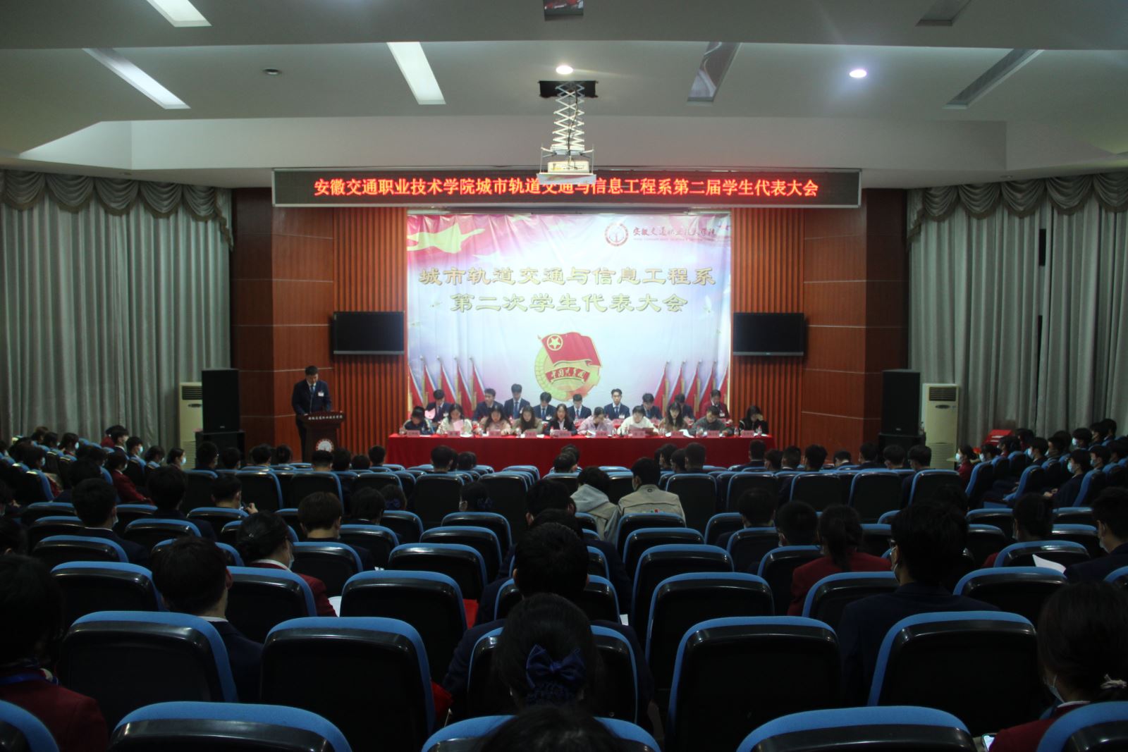 11月17日晚,城信系第二次学生代表大会在学院北区八角楼多功能报告厅召开。系党总支书记汪倩、副书记承友明、全体学管老师以及56名学生正式代表、23名学生列席人员参加了本次会议。会议由城信系团总支书记徐海霞主持。