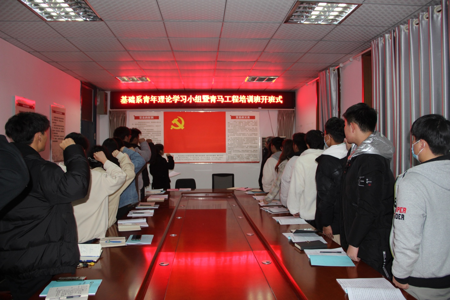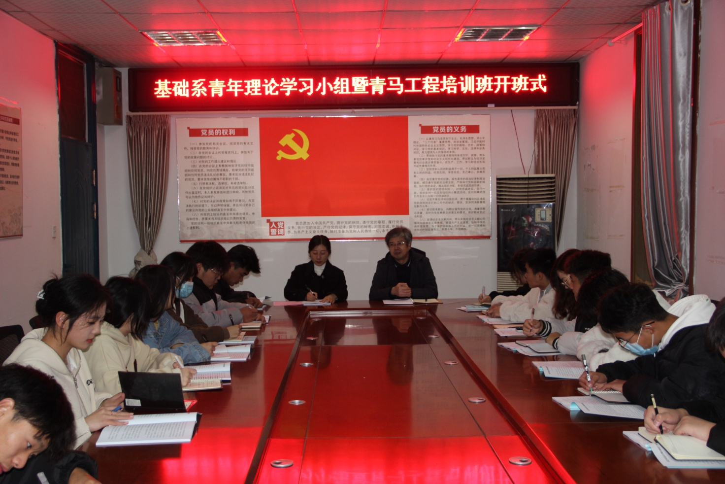 为深入学习宣传贯彻党的二十大精神,进一步推动马克思主义理论在青年中广泛传播,努力培养一批信仰坚定、能力突出、作风过硬的青年学生骨干,11月29日,基础系团总支举办青年理论学习小组、“青年马克思主义者培养工程”首期培训班开班仪式。系党总支书记邵登泰参加开班仪式,系团总支书记孙巍巍主持开班仪式,系学生管理相关教师参加仪式。
