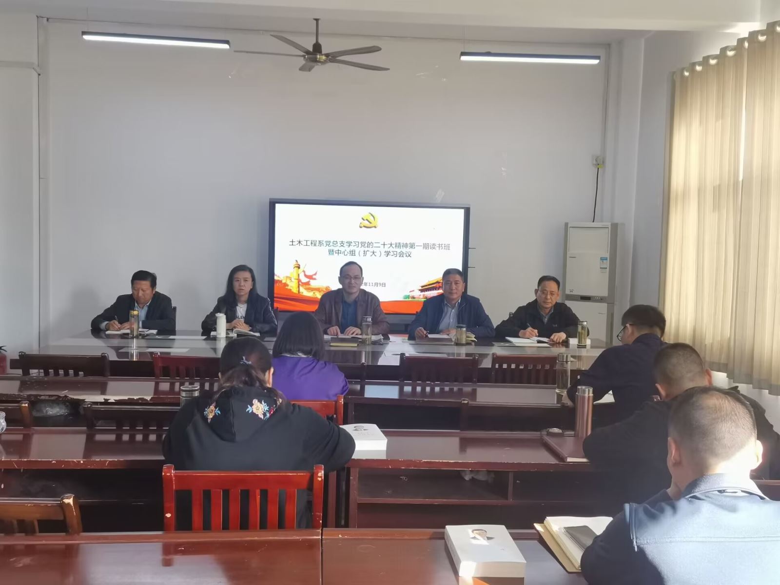 11月9日下午,土木系党总支召开学习党的二十大精神第一期读书班暨中心组(扩大)学习会议,系领导班子、副科级以上干部和党支部书记参会。