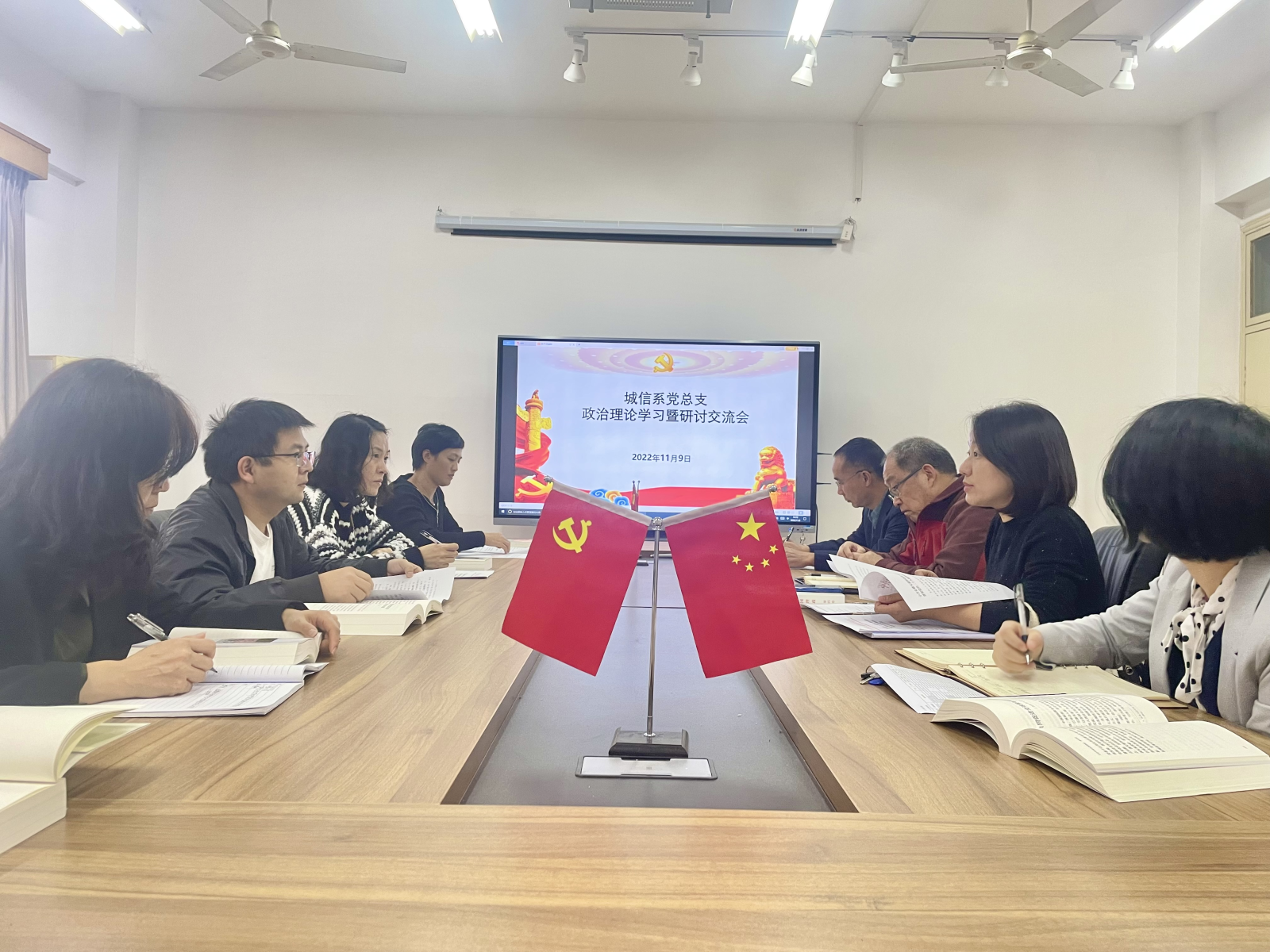 11月9日下午,城信系党总支召开党的二十大精神专题集中学习会,全体总支委员参加会议,会议由系党总支书记汪倩主持。