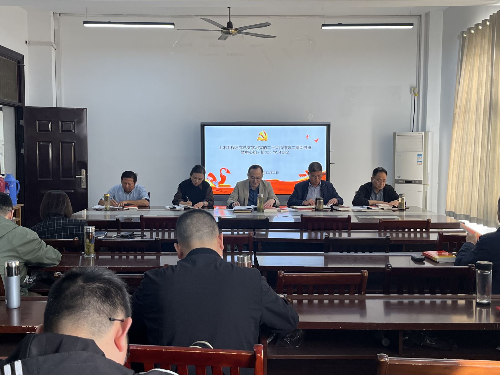 11月11日下午,土木系党总支召开学习党的二十大精神第一期读书班暨中心组(扩大)学习会议,系领导班子、副科级以上干部和党支部书记参会。