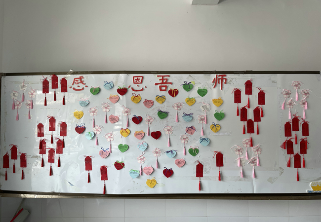 学生们放下手机,用传统的方式书写表达自己对老师的节日祝福、对22级新生的寄语和建议。再通过精心地排版设计,把寄语卡片排列出“心”型,传递自己的真情。