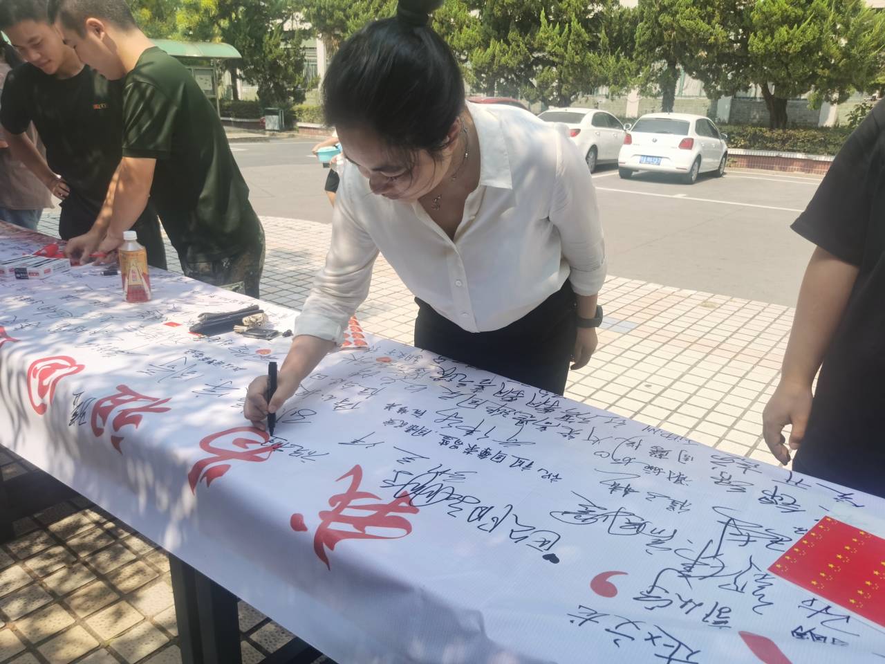 活动现场,老师和同学们纷纷在签名海报上写下对祖国母亲的美好祝愿,并郑重签下自己的名字。“祖国母亲,生日快乐”“祝福祖国繁荣昌盛”“愿祖国国泰民安”“祖国我爱您”等一句句简单而朴实的话语,承载了大家对祖国的美好祝福和浓浓的爱国之情。21汽修3班章安说:“生在红旗下,长在春风里,作为一名青年学生,生逢盛世,我感到无比自豪,同时也倍感责任重大,我们必须努力拼搏,在青春的赛道上奋力奔跑,不负韶华,不负时代,不负人民!