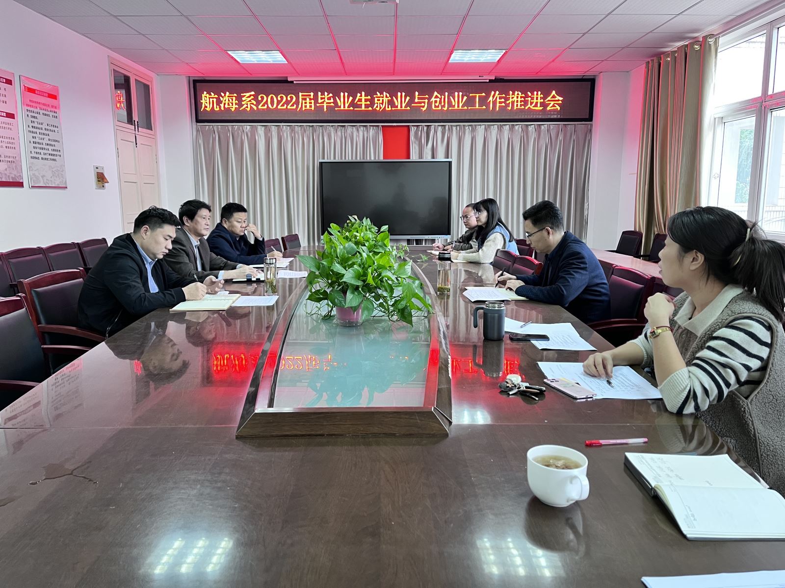 会议传达了院党委高度重视毕业生就业创业工作的要求,总结了2022届毕业生就业工作总体情况,通报了各班级就业率和家庭经济困难学生的就业状况,要求进一步提高航海系就业工作质量。
