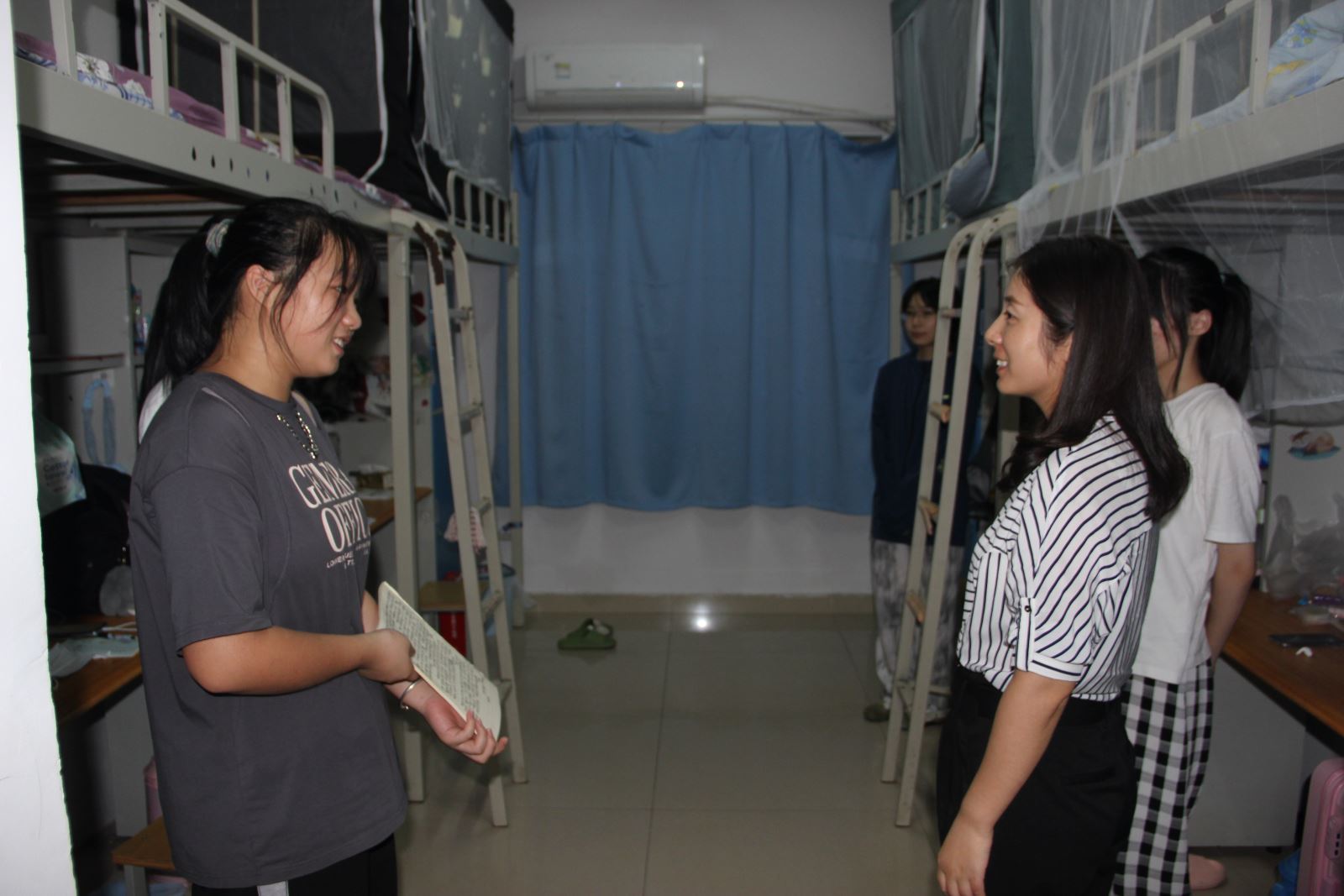 当天下午,各新生辅导员召开班会,从专业介绍、思政教育、爱国主义教育、校纪校规、心理适应等方面进行新生入学教育。晚间,系领导班子代表走访新生宿舍,全面检查宿舍内部配置及宿舍区卫生、安全、疫情防控等情况,倾听新生诉求、了解新生困难,为新生营造温暖舒适的生活环境,让新生们感受到学院的关怀,帮助他们尽快适应新环境、融入新生活。(基础系 魏笑君)