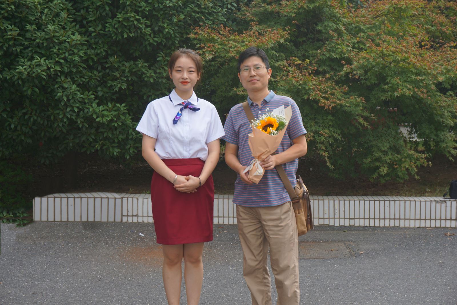 9月9日,城信系文艺部同学身着系服手捧鲜花在信息楼、看台楼、教学楼前迎接着老师的到来。“教师节快乐!”沁人心脾的鲜花和温暖的话语,饱含了学生们浓浓的情谊,表达了对老师们传道受业解惑的感谢。