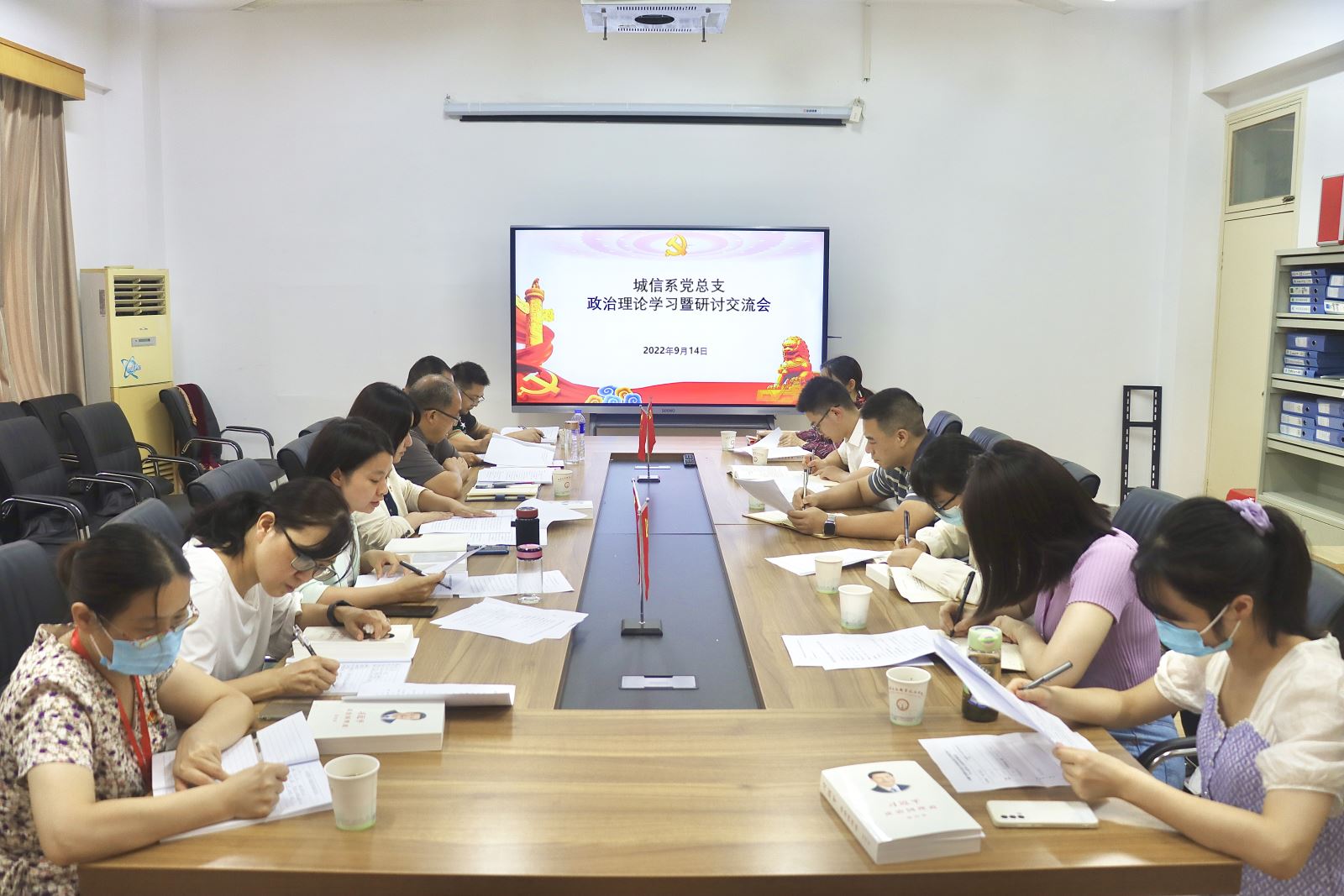 9月14日下午,城信系党总支召开中心组(扩大)学习会议,开展《习近平谈治国理政》第四卷专题学习研讨,系领导班子、副科级以上人员及教师代表参会。会议由系党总支书记汪倩主持,学院第三巡听组成员到会巡听指导。