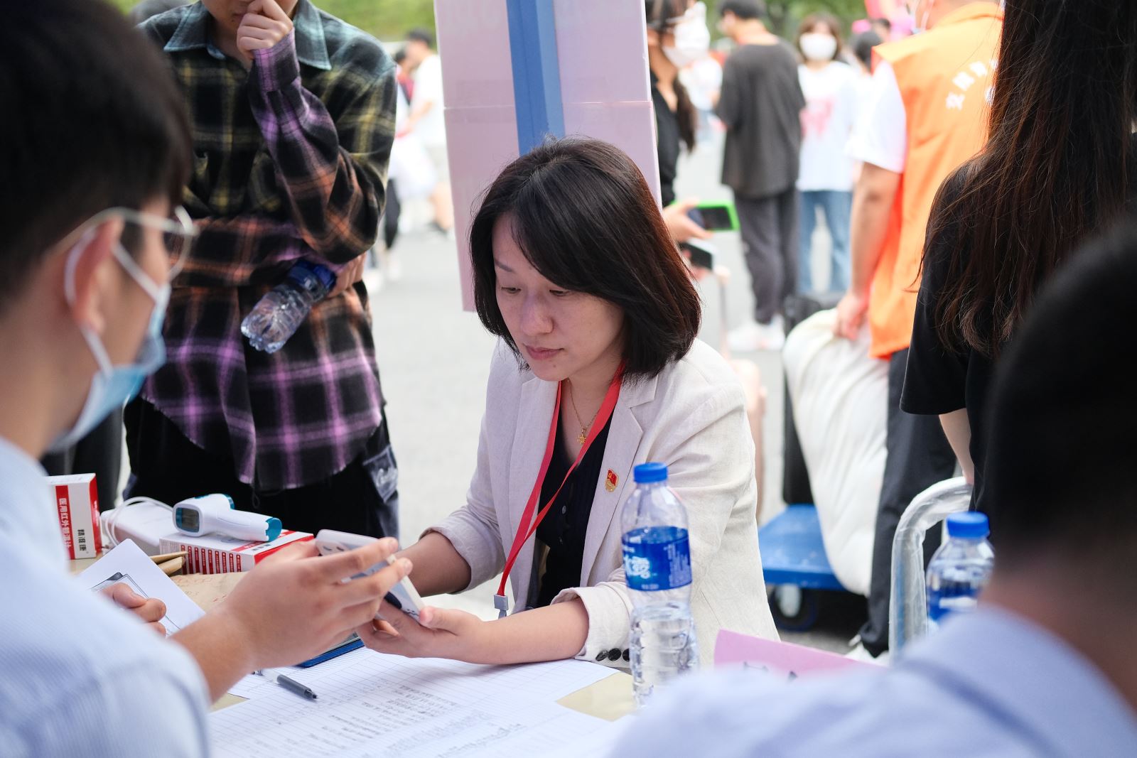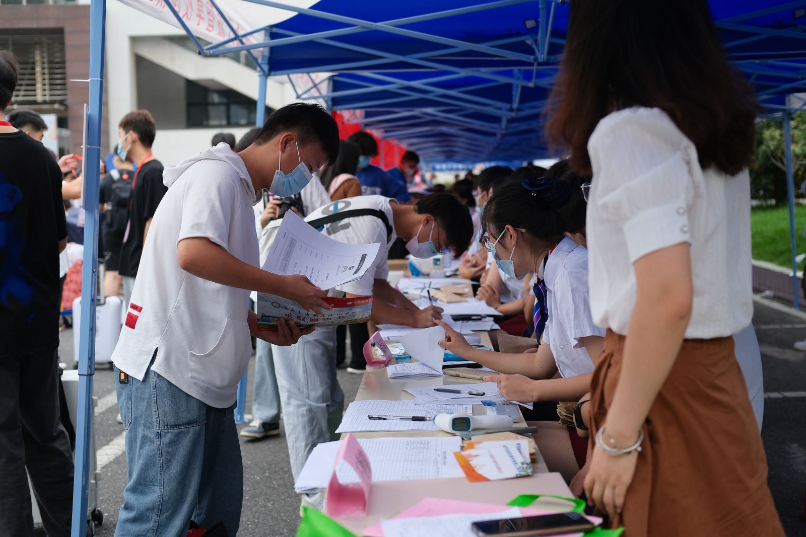 城信系配合学院落实落细各项疫情防控工作要求,严格审核健康码、行程码、48小时核酸阴性报告等防疫材料,统筹安排报到后“三天两检”全员核酸工作,新生报到现场安全有序。