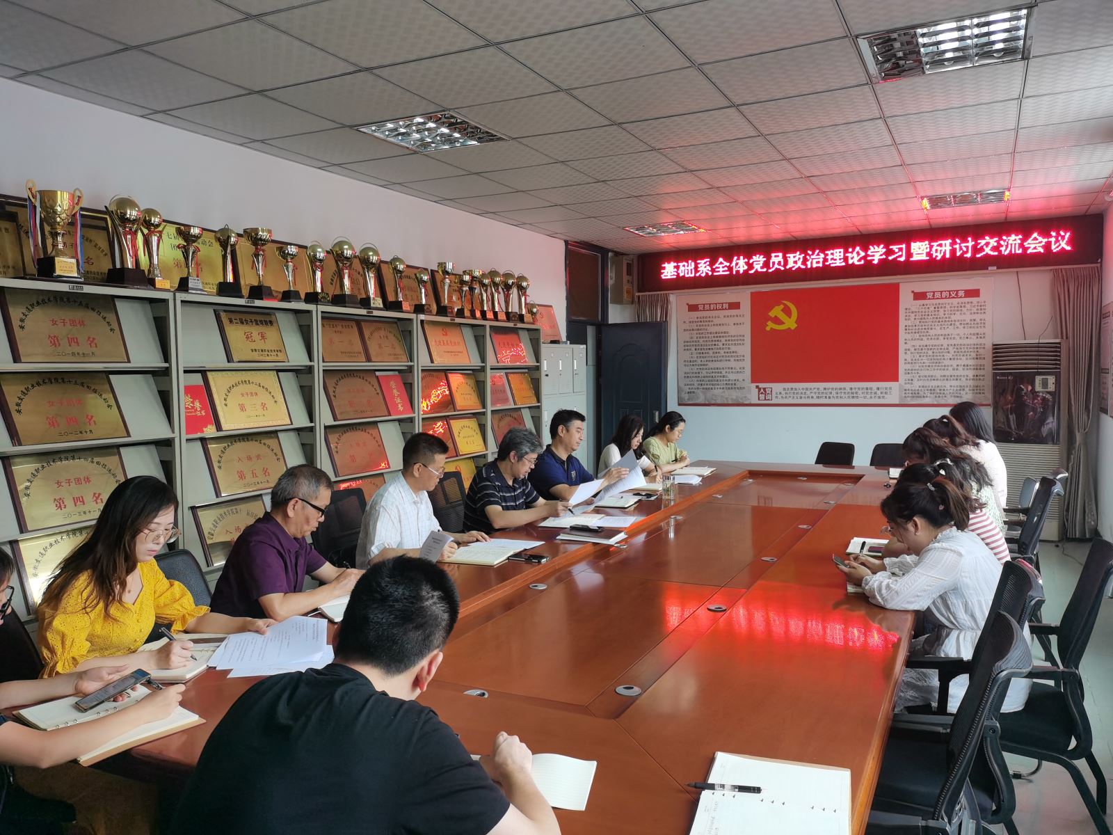 8月25日上午,基础系党总支召开政治理论学习会暨《习近平谈治国理政》第四卷专题学习研讨会议。系党总支书记邵登泰主持会议,全体党员参加。