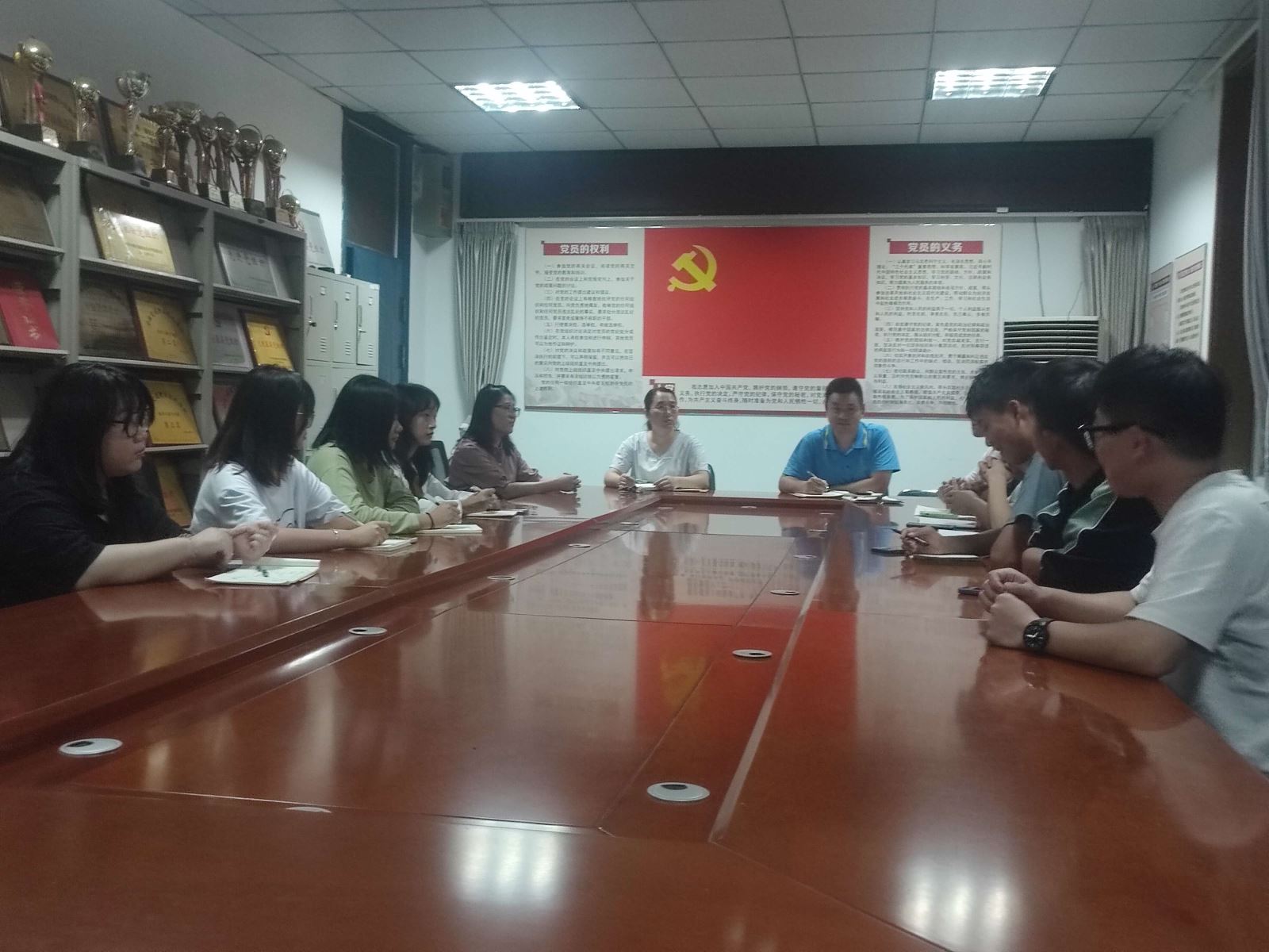 为做好疫情防控和秋季开学后学生管理工作,8月29日晚,管理系在南区三楼会议室召开了全体21级学生管理暨班长工作例会。系党总支副书记陶琪、学生管理教师王敏、学生会干部及全体21级班长参会,会议由主任辅导员何基荣主持。