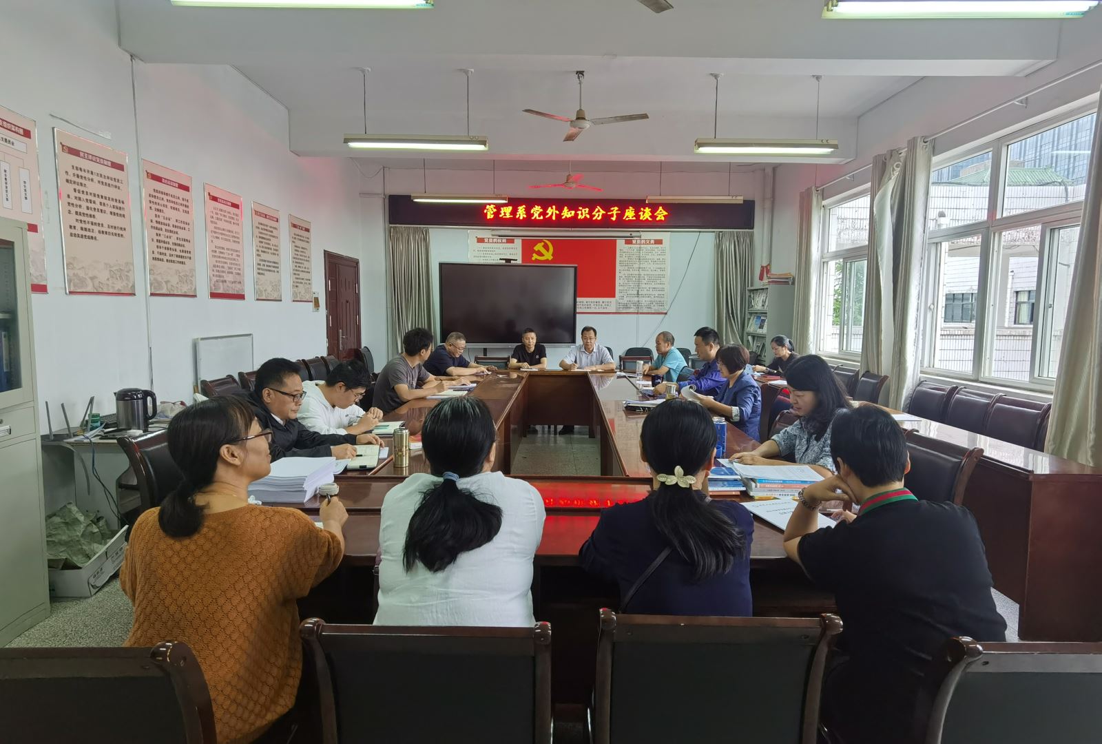 为进一步加强统战工作,8月31日下午,管理系召开党外知识分子座谈会,会议由系主任兼统战委员岳朝晖主持。系党总支书记汪思曼参会。