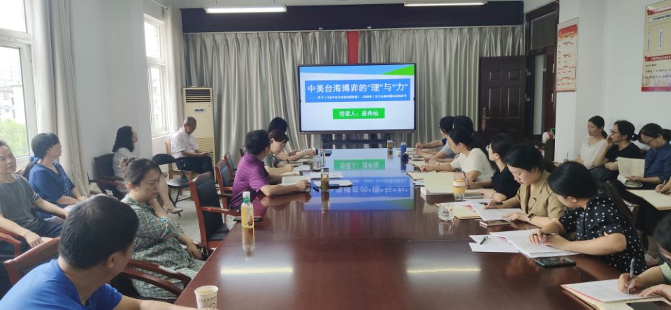 会上围绕“疫情防控《习近平谈治国理政》第四版一改两为”三个专题集中学习解读了《全面推进“大思政课”建设的工作方案》通知要求、传达了学院疫情防控会议精神,新冠肺炎防控方案(第九版)等相关文件,跟进学习了习近平总书记在辽宁、新疆考察时的强调讲话、习近平论坚持总体国家安全观(2020—2022),《习近平谈治国理政》第一、二专题、党性党风党纪教育十二讲第三讲—全党要更加自觉地坚定党性原则等内容。集中学习后,昌希灿结合《习近平谈治国理政》第四卷第十六、十七章国家发展与统一、国家安全等内容,以中美台海博弈的“理”与“力”为题作党课宣讲,分析了中美台海博弈的逻辑起点,多角度对中美博弈展开比较,加深了在座教师对国家发展和安全,坚持推进国家统一的认识。在座老师纷纷围绕《习近平谈治国理政》第四卷的内容展开研讨,系副主任王珏认为,要把理论学习与做好本职工作紧密结合起来,充分挖掘第四卷之中的育人元素,引导大学生积极践行习近平新时代中国特色社会主义思想,要树立底线思维,在工作中,人才培养过程中,要未雨绸缪、防患未然,应对挑战,多想一步、深想一层,主动学习应变,推动教育教学改革,提升人才培养质量。思政教师卞明镜认为,作为思政教师要把握好习近平新时代中国特色社会主义思想的世界观和方法论,坚持好、运用好贯穿其中的立场观点方法,敢于作斗争,善于做斗争,守好意识形态主阵地。