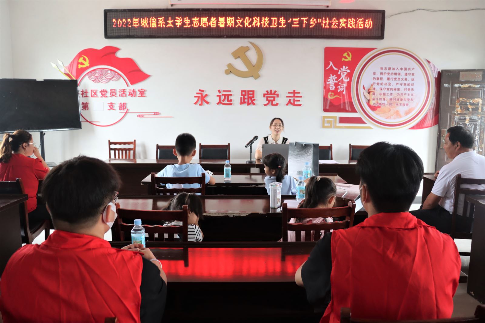为引导大学生开展下沉式、进驻式的实践锻炼和学习体验,团结引领广大青年学习上好与现实结合的“大思政课”,让青年学子在实践中出真知,在感知中悟真理,强化实践能力,8月29日,城信系团总支赴安徽省合肥市肥东县杨店乡岭兴社区,开展了以“喜迎二十大,奋进新征程”为主题的2022年大学生志愿者暑期文化科技卫生“三下乡”社会实践活动。此次活动坚持党旗所指团旗所向,按照“百千万工程”工作思路,围绕理论普及宣讲、深化党史学习、乡村振兴、助力和保护光伏发电的高质量发展等方面进行了多种形式的实践。