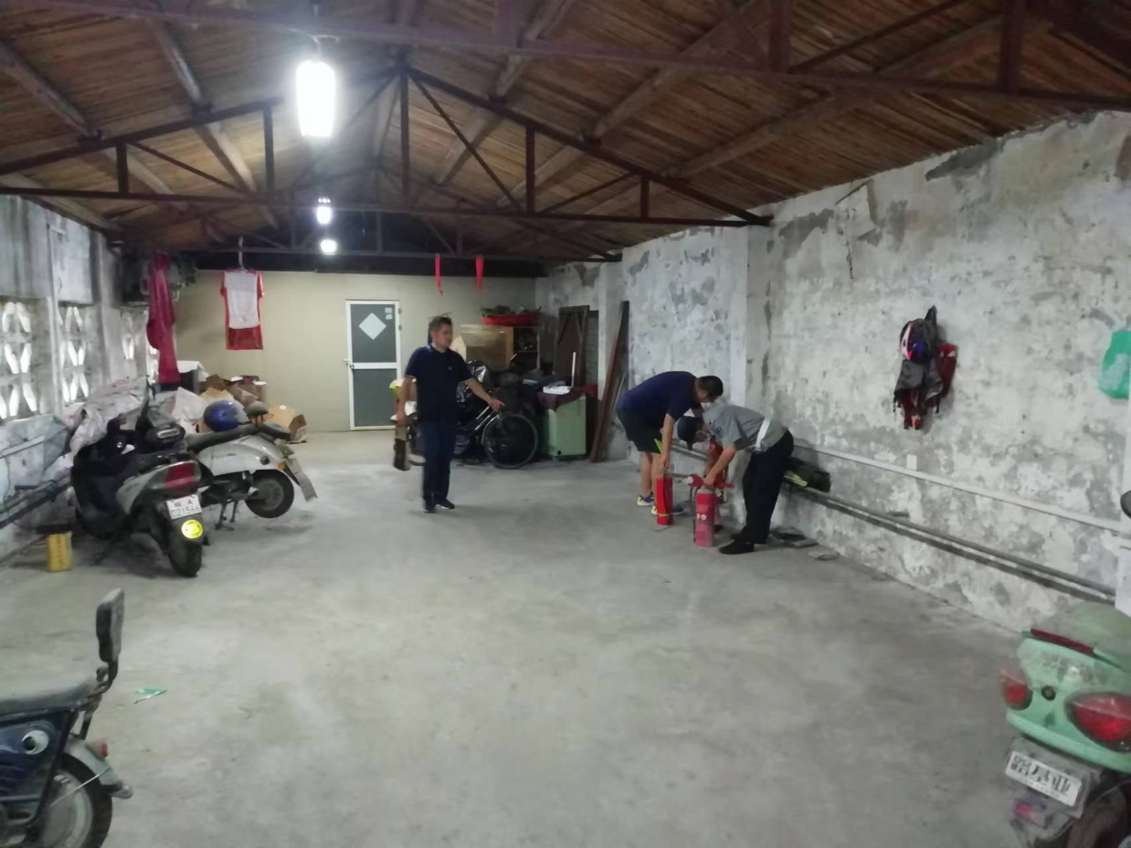 检查组一行查看了学生宿舍卫生、床铺及上床楼梯的安全性,确保学生上下床安全、牢固;在北区自行车棚检查组发现里面堆放了大量的纸箱等杂物,存在较大的安全隐患,通知管理人员当场整改。
